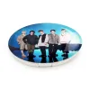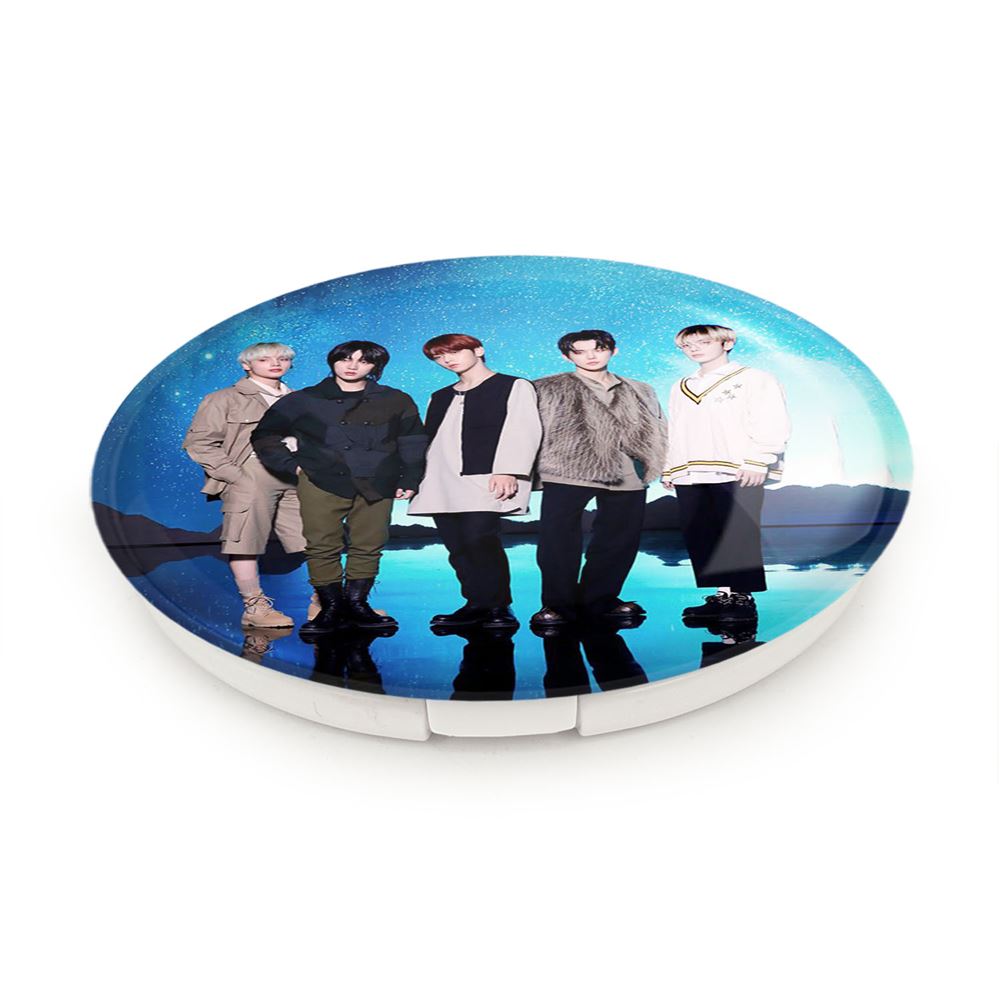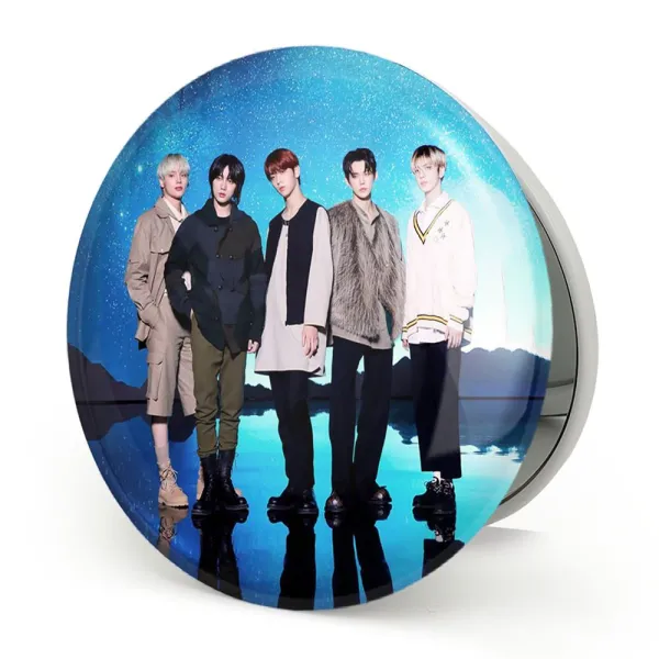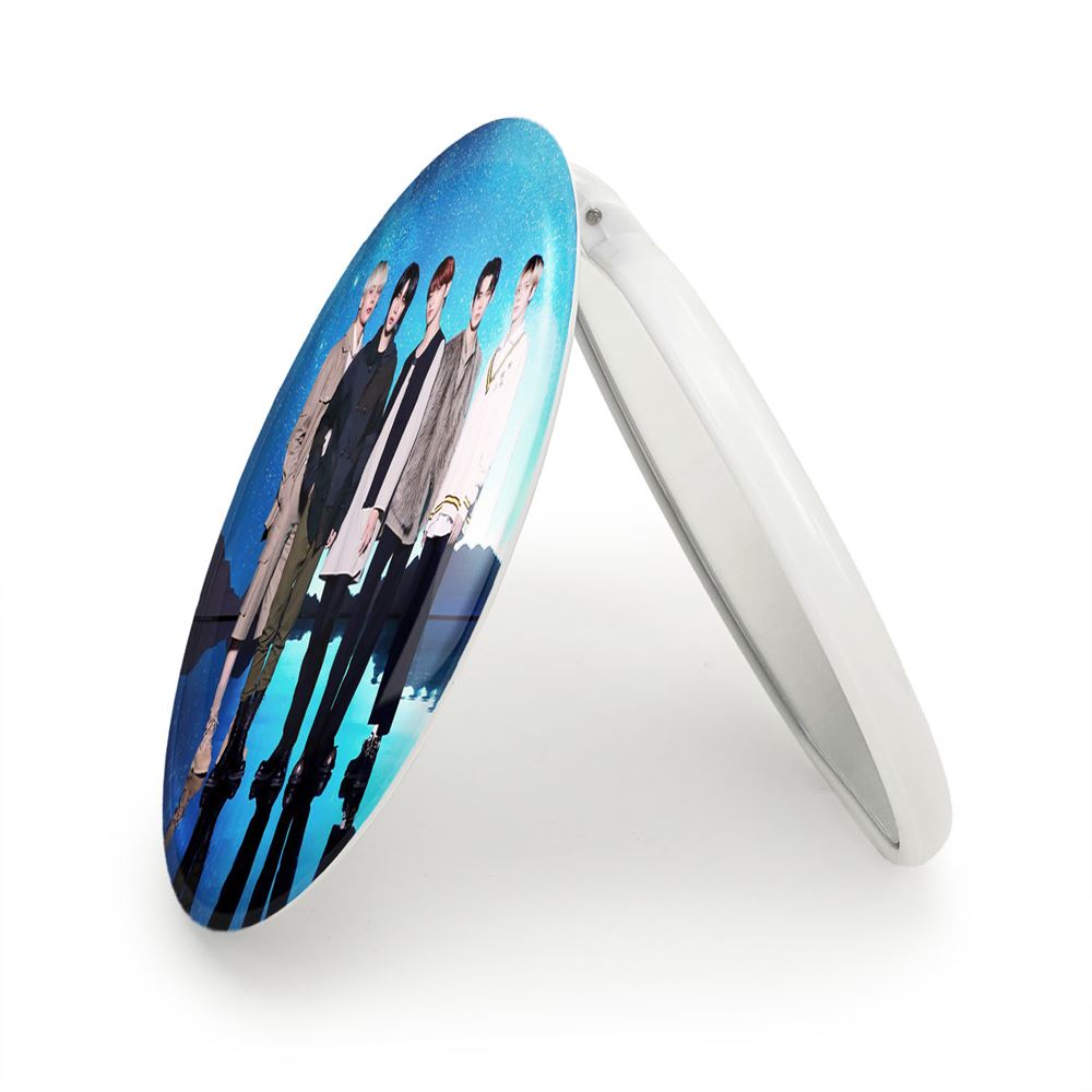آینه های تاشو گروه تی اکس تی TXT خندالو، از جنس پلاستیک فشرده ABS تولید شده و به رنگ سفید می باشد. یکی از آینه ها ابعاد واقعی را نشان داده و دیگری با قابلیت بزرگنمایی، جزئیات را بهتر نمایش می دهد. ابعاد هر یک از آینه ها، دایره ای به قطر 7.5 سانت می باشد که نه خیلی بزرگ و غیر قابل استفاده در کیف آرایشی ست و نه خیلی کوچک که تصویر خاصی در آن مشاهده نشود. آینه تاشو گروه تی اکس تی TXT سایزی استاندارد و کارآمد دارد و در هر کیفی جا میگیرد. چاپ طرح بوسیله چاپگرهای دیجیتال شش رنگ با شفافیت و کیفیتی مثال زدنی بر روی یک وجه از بدنه ی آینه انجام گرفته و با روکش لمینت حرارتی پوشیده شده که در مقابل آسیب و خط و خش مقاوم بوده و کیفیت بالایی دارد. درب آینه بوسیله قفل بدنه ی آن، باز نمی ماند و کاملا بسته می شود و مناسب قرار گیری در کیف لوازم آرایش و کیف های کوچک دستی نیز هست. آینه های تاشو گروه تی اکس تی TXT خندالو با تنوع طرحی بسیار بالا، سلیقه هر نوع مخاطبی را تامین میکند.
