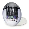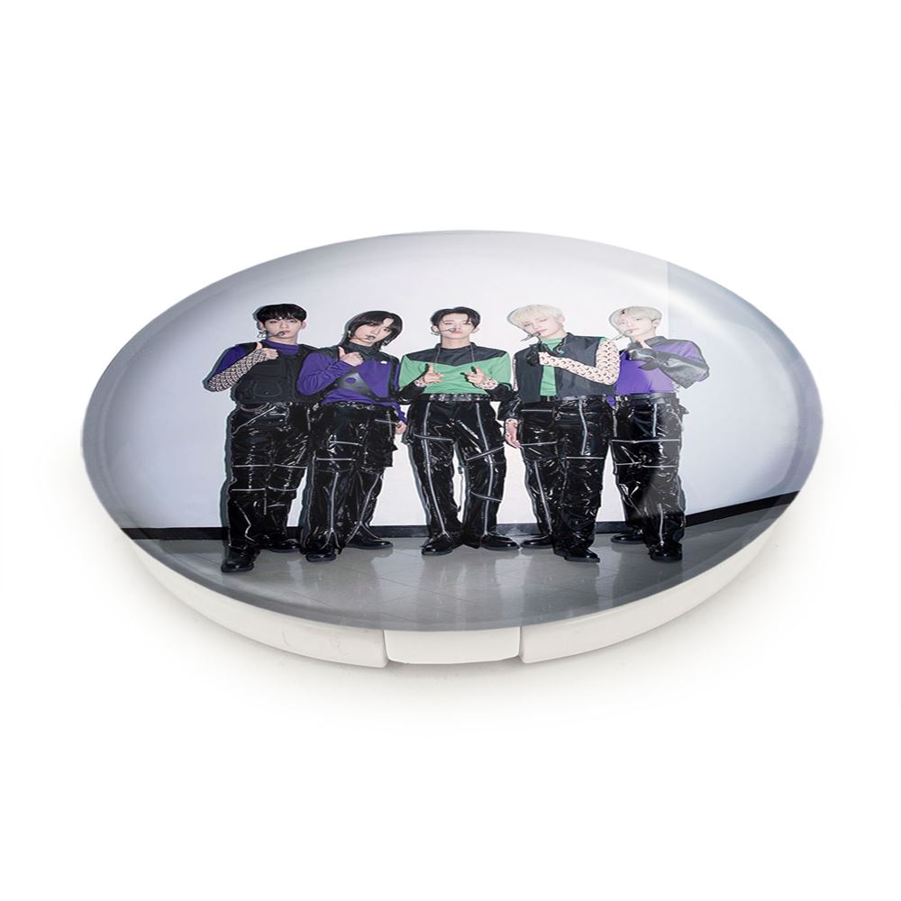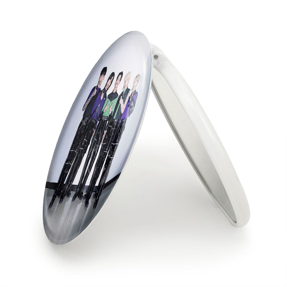 آینه های تاشو گروه تی اکس تی TXT خندالو، از جنس پلاستیک فشرده ABS تولید شده و به رنگ سفید می باشد. یکی از آینه ها ابعاد واقعی را نشان داده و دیگری با قابلیت بزرگنمایی، جزئیات را بهتر نمایش می دهد. ابعاد هر یک از آینه ها، دایره ای به قطر 7.5 سانت می باشد که نه خیلی بزرگ و غیر قابل استفاده در کیف آرایشی ست و نه خیلی کوچک که تصویر خاصی در آن مشاهده نشود. آینه تاشو گروه تی اکس تی TXT سایزی استاندارد و کارآمد دارد و در هر کیفی جا میگیرد. چاپ طرح بوسیله چاپگرهای دیجیتال شش رنگ با شفافیت و کیفیتی مثال زدنی بر روی یک وجه از بدنه ی آینه انجام گرفته و با روکش لمینت حرارتی پوشیده شده که در مقابل آسیب و خط و خش مقاوم بوده و کیفیت بالایی دارد. درب آینه بوسیله قفل بدنه ی آن، باز نمی ماند و کاملا بسته می شود و مناسب قرار گیری در کیف لوازم آرایش و کیف های کوچک دستی نیز هست. آینه های تاشو گروه تی اکس تی TXT خندالو با تنوع طرحی بسیار بالا، سلیقه هر نوع مخاطبی را تامین میکند.