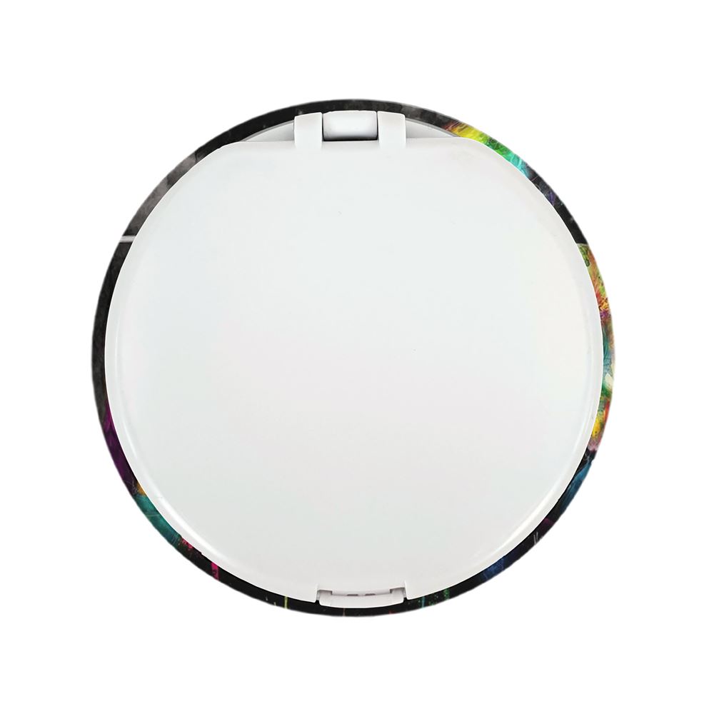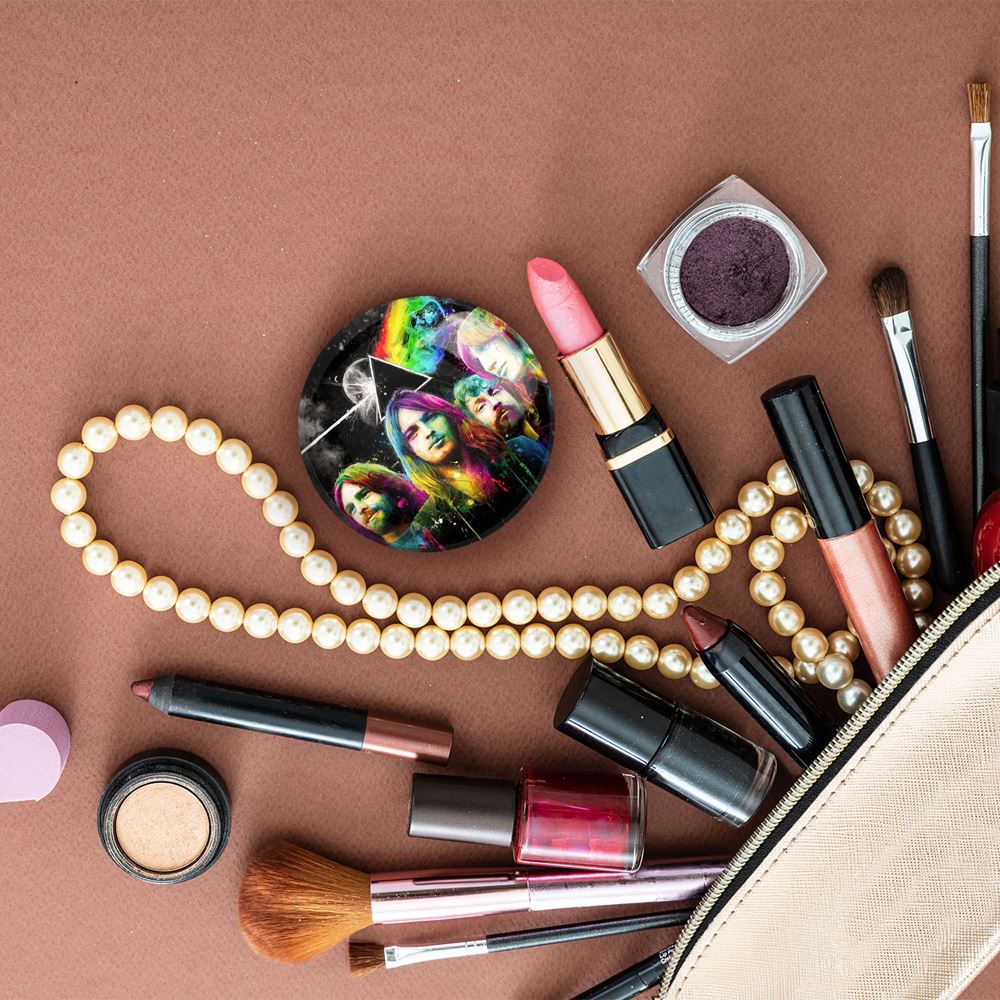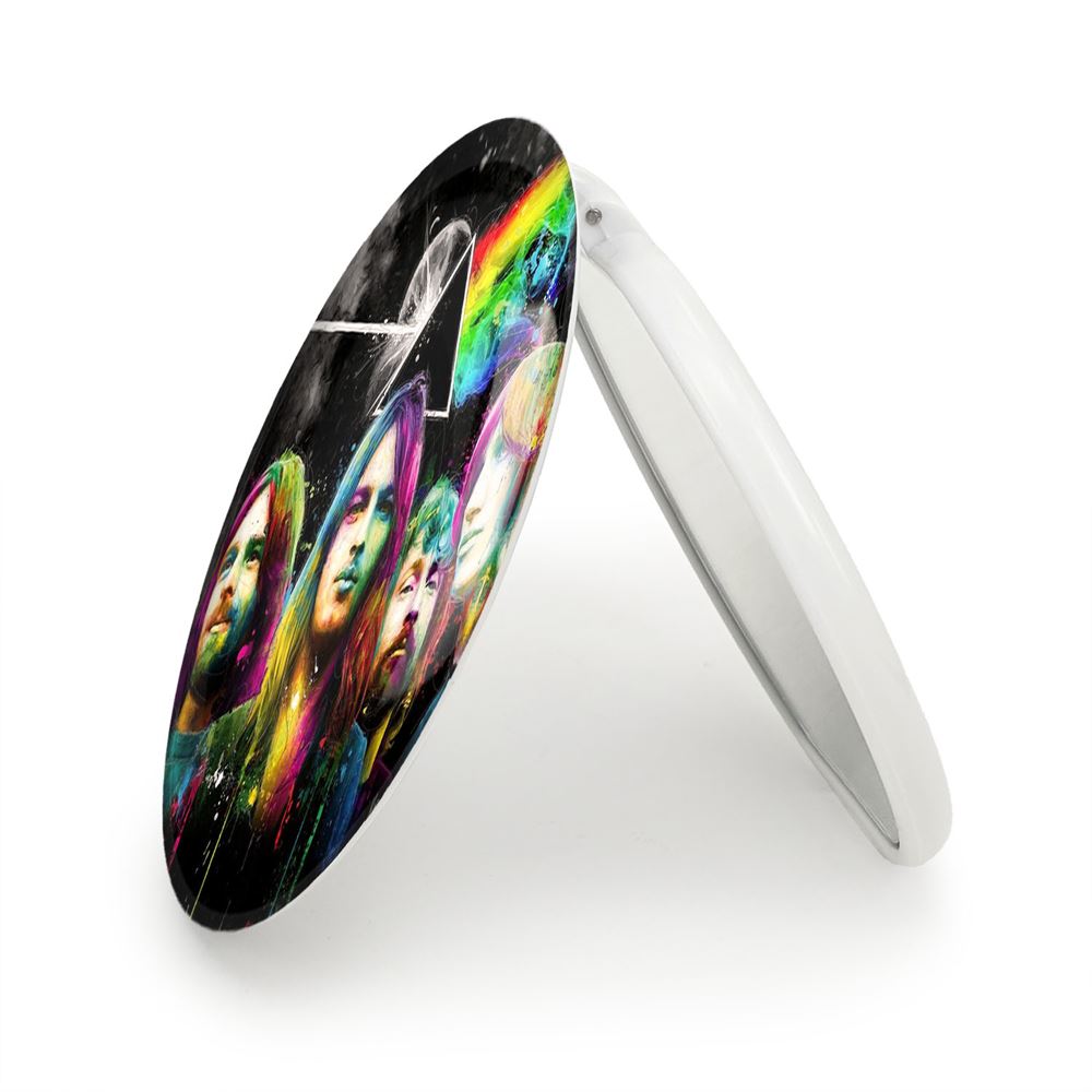 آینه های تاشو گروه پینک فلوید Pink Floyd خندالو، از جنس پلاستیک فشرده ABS تولید شده و به رنگ سفید می باشد. یکی از آینه ها ابعاد واقعی را نشان داده و دیگری با قابلیت بزرگنمایی، جزئیات را بهتر نمایش می دهد. ابعاد هر یک از آینه ها، دایره ای به قطر 7.5 سانت می باشد که نه خیلی بزرگ و غیر قابل استفاده در کیف آرایشی ست و نه خیلی کوچک که تصویر خاصی در آن مشاهده نشود. آینه تاشو گروه پینک فلوید Pink Floyd سایزی استاندارد و کارآمد دارد و در هر کیفی جا میگیرد. چاپ طرح بوسیله چاپگرهای دیجیتال شش رنگ با شفافیت و کیفیتی مثال زدنی بر روی یک وجه از بدنه ی آینه انجام گرفته و با روکش لمینت حرارتی پوشیده شده که در مقابل آسیب و خط و خش مقاوم بوده و کیفیت بالایی دارد. درب آینه بوسیله قفل بدنه ی آن، باز نمی ماند و کاملا بسته می شود و مناسب قرار گیری در کیف لوازم آرایش و کیف های کوچک دستی نیز هست. آینه های تاشو گروه پینک فلوید Pink Floyd خندالو با تنوع طرحی بسیار بالا، سلیقه هر نوع مخاطبی را تامین میکند.