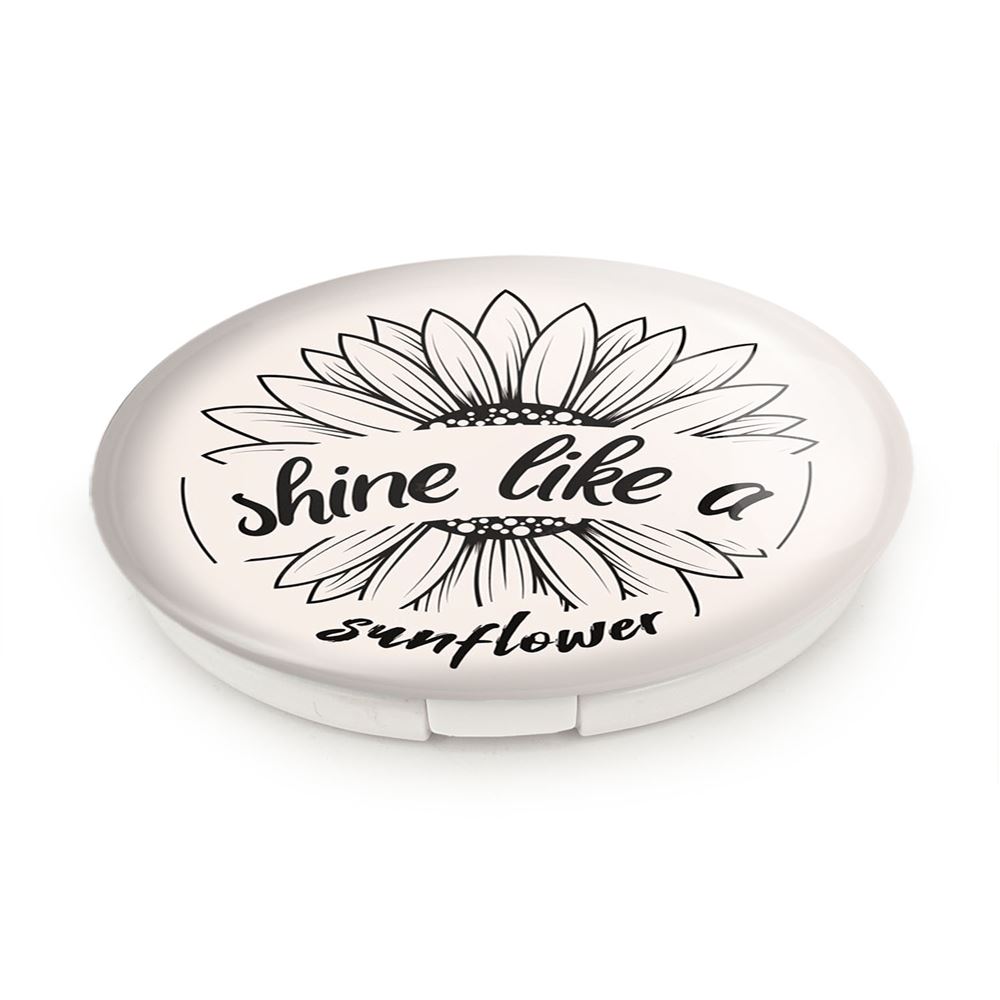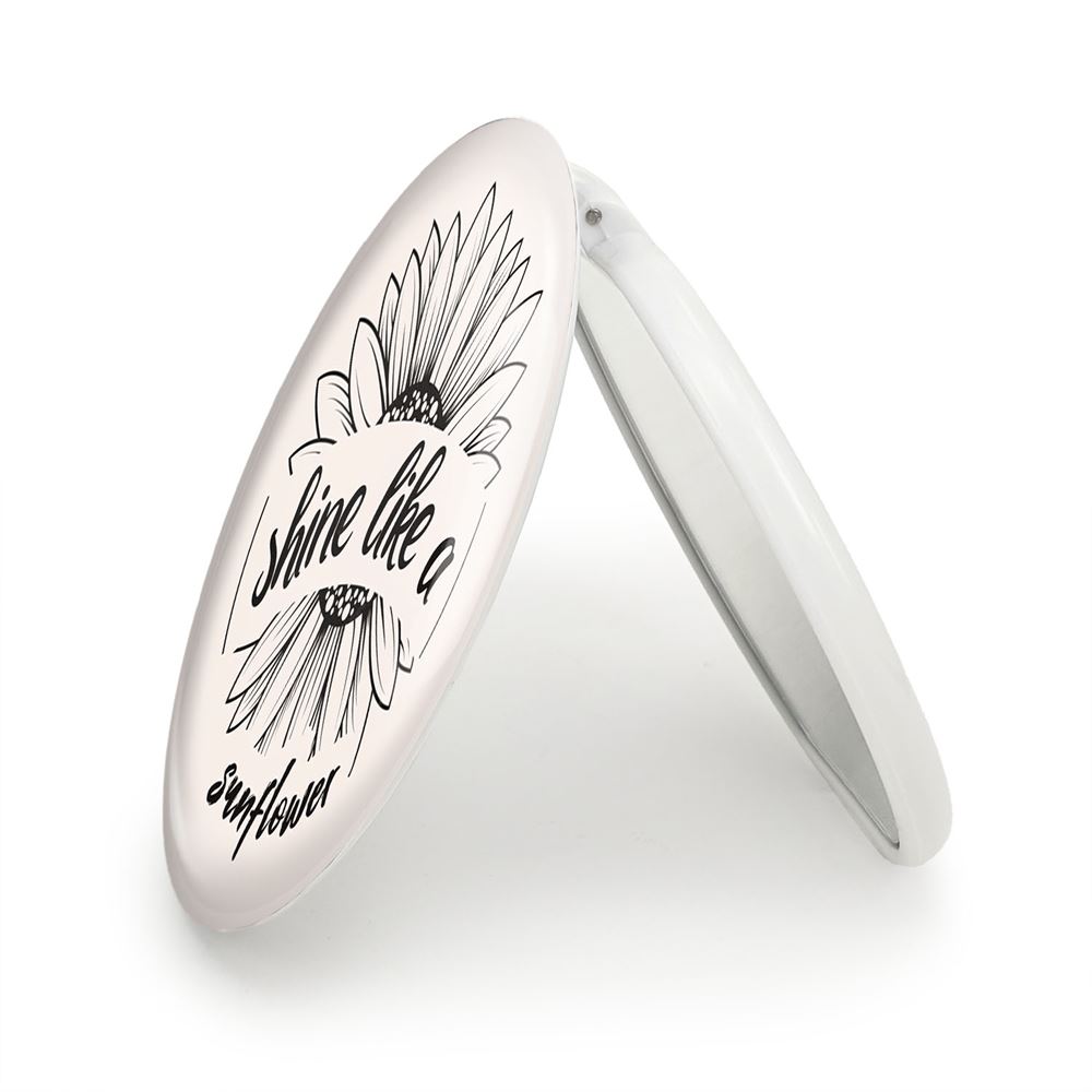 آینه های تاشو گل آفتابگردان خندالو، از جنس پلاستیک فشرده ABS تولید شده و به رنگ سفید می باشد. یکی از آینه ها ابعاد واقعی را نشان داده و دیگری با قابلیت بزرگنمایی، جزئیات را بهتر نمایش می دهد.