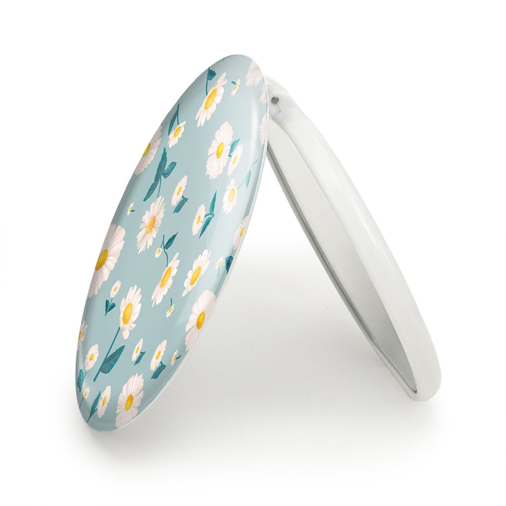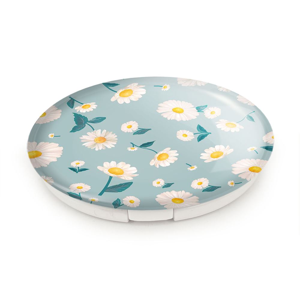 آینه های تاشو گل بابونه خندالو، از جنس پلاستیک فشرده ABS تولید شده و به رنگ سفید می باشد. یکی از آینه ها ابعاد واقعی را نشان داده و دیگری با قابلیت بزرگنمایی، جزئیات را بهتر نمایش می دهد.