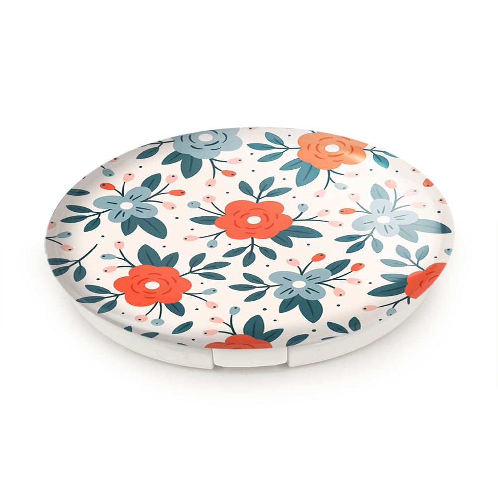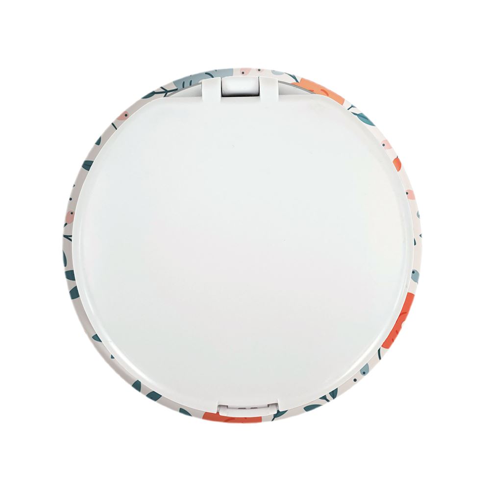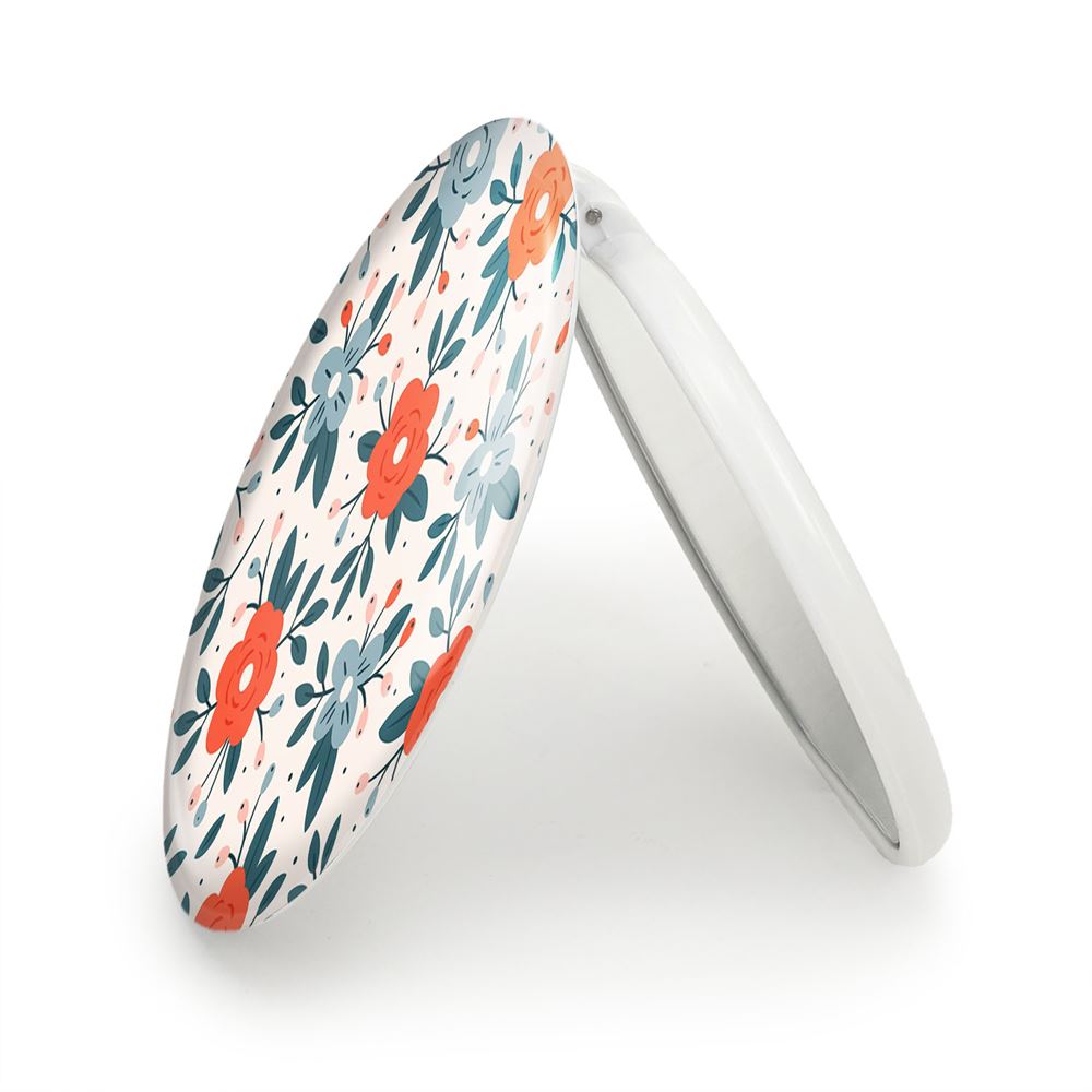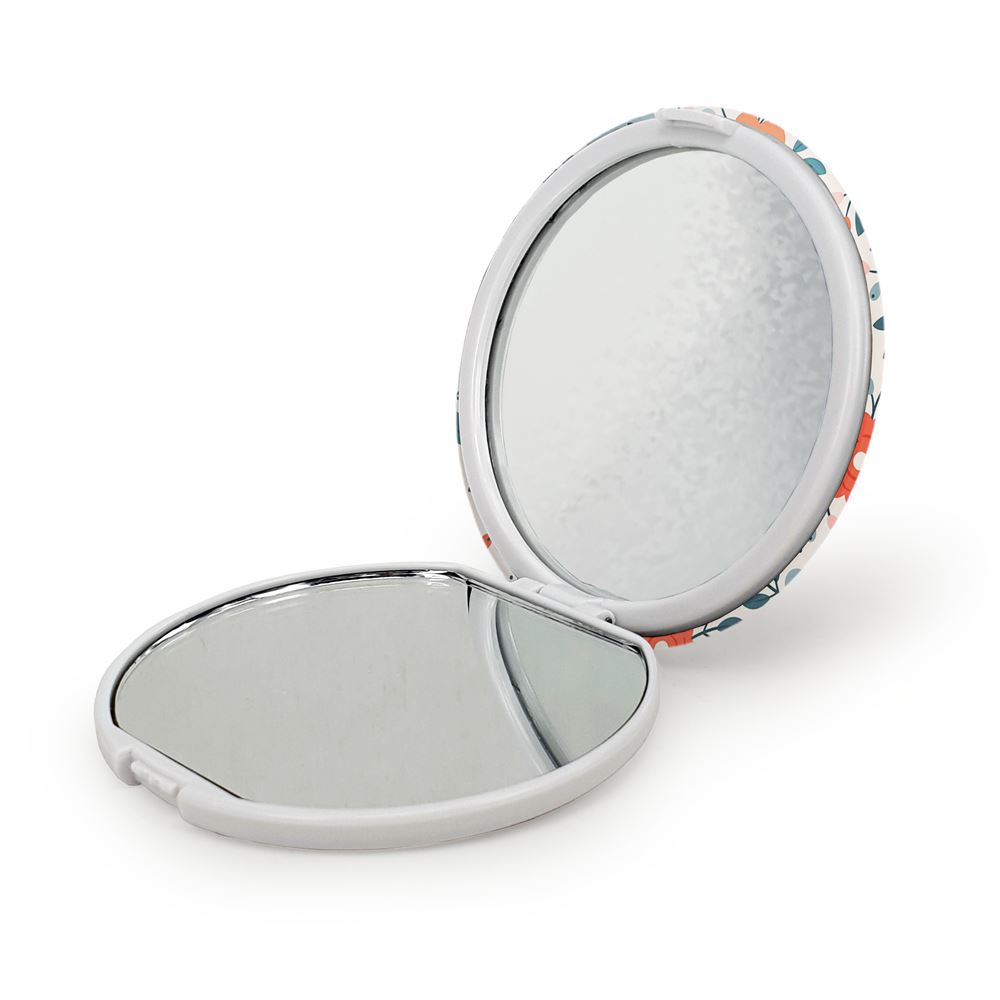 آینه های تاشو گل گلی خندالو، از جنس پلاستیک فشرده ABS تولید شده و به رنگ سفید می باشد. یکی از آینه ها ابعاد واقعی را نشان داده و دیگری با قابلیت بزرگنمایی، جزئیات را بهتر نمایش می دهد. ابعاد هر یک از آینه ها، دایره ای به قطر 7.5 سانت می باشد که نه خیلی بزرگ و غیر قابل استفاده در کیف آرایشی ست و نه خیلی کوچک که تصویر خاصی در آن مشاهده نشود. آینه تاشو گل گلی سایزی استاندارد و کارآمد دارد و در هر کیفی جا میگیرد. چاپ طرح بوسیله چاپگرهای دیجیتال شش رنگ با شفافیت و کیفیتی مثال زدنی بر روی یک وجه از بدنه ی آینه انجام گرفته و با روکش لمینت حرارتی پوشیده شده که در مقابل آسیب و خط و خش مقاوم بوده و کیفیت بالایی دارد. درب آینه بوسیله قفل بدنه ی آن، باز نمی ماند و کاملا بسته می شود و مناسب قرار گیری در کیف لوازم آرایش و کیف های کوچک دستی نیز هست. آینه های تاشو گل گلی خندالو با تنوع طرحی بسیار بالا، سلیقه هر نوع مخاطبی را تامین میکند.