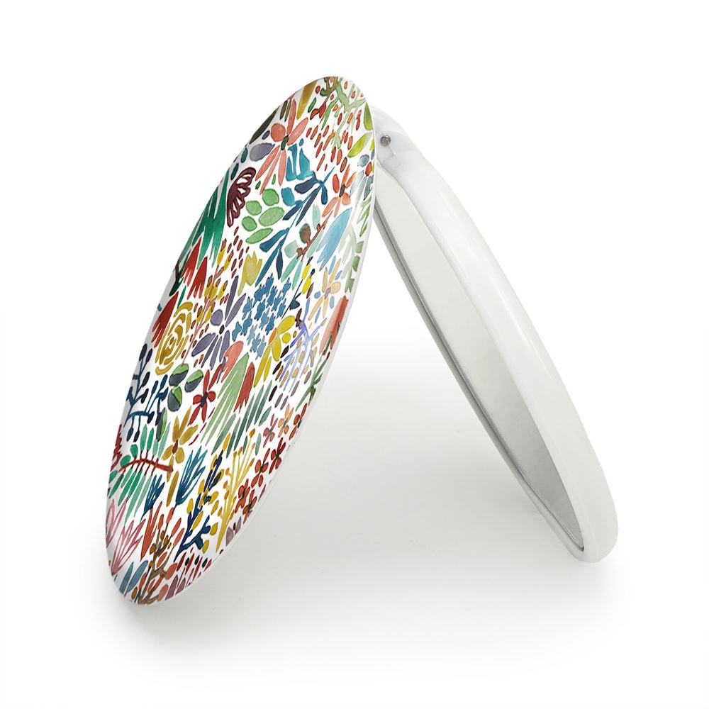 آینه های تاشو گل گلی خندالو، از جنس پلاستیک فشرده ABS تولید شده و به رنگ سفید می باشد. یکی از آینه ها ابعاد واقعی را نشان داده و دیگری با قابلیت بزرگنمایی، جزئیات را بهتر نمایش می دهد.