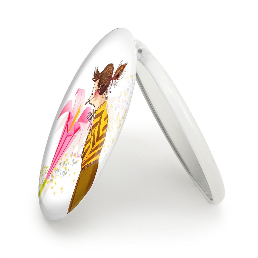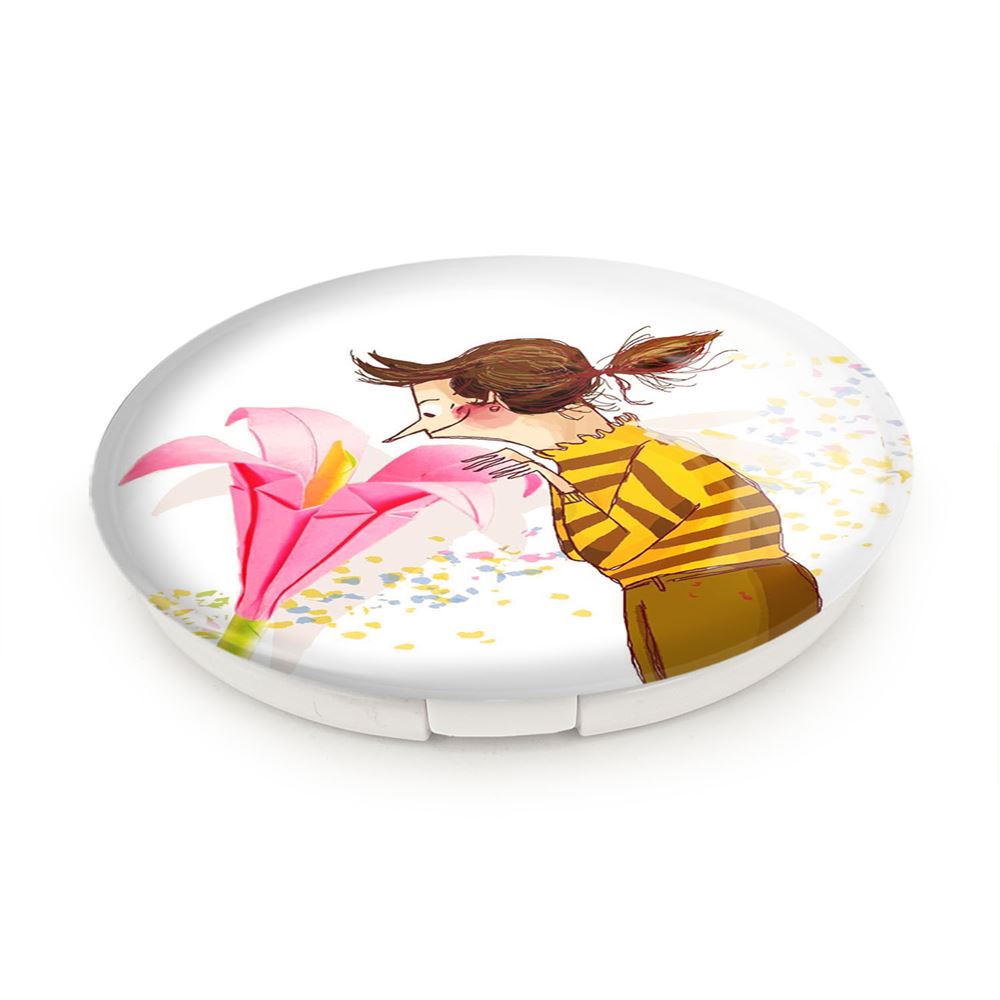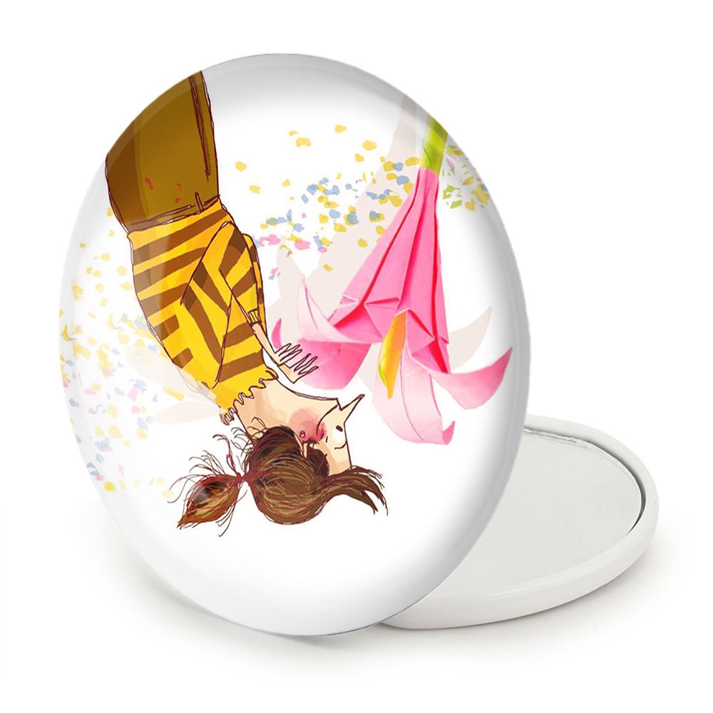 آینه های تاشو گل خندالو، از جنس پلاستیک فشرده ABS تولید شده و به رنگ سفید می باشد. یکی از آینه ها ابعاد واقعی را نشان داده و دیگری با قابلیت بزرگنمایی، جزئیات را بهتر نمایش می دهد. ابعاد هر یک از آینه ها، دایره ای به قطر 7.5 سانت می باشد که نه خیلی بزرگ و غیر قابل استفاده در کیف آرایشی ست و نه خیلی کوچک که تصویر خاصی در آن مشاهده نشود. آینه تاشو گل سایزی استاندارد و کارآمد دارد و در هر کیفی جا میگیرد. چاپ طرح بوسیله چاپگرهای دیجیتال شش رنگ با شفافیت و کیفیتی مثال زدنی بر روی یک وجه از بدنه ی آینه انجام گرفته و با روکش لمینت حرارتی پوشیده شده که در مقابل آسیب و خط و خش مقاوم بوده و کیفیت بالایی دارد. درب آینه بوسیله قفل بدنه ی آن، باز نمی ماند و کاملا بسته می شود و مناسب قرار گیری در کیف لوازم آرایش و کیف های کوچک دستی نیز هست. آینه های تاشو گل خندالو با تنوع طرحی بسیار بالا، سلیقه هر نوع مخاطبی را تامین میکند.