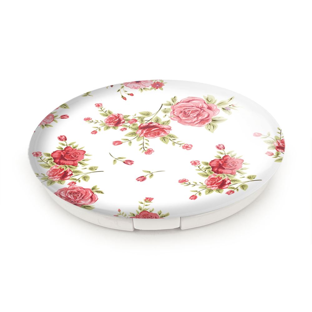 آینه های تاشو گل خندالو، از جنس پلاستیک فشرده ABS تولید شده و به رنگ سفید می باشد. یکی از آینه ها ابعاد واقعی را نشان داده و دیگری با قابلیت بزرگنمایی، جزئیات را بهتر نمایش می دهد. ابعاد هر یک از آینه ها، دایره ای به قطر 7.5 سانت می باشد که نه خیلی بزرگ و غیر قابل استفاده در کیف آرایشی ست و نه خیلی کوچک که تصویر خاصی در آن مشاهده نشود. آینه تاشو گل سایزی استاندارد و کارآمد دارد و در هر کیفی جا میگیرد. چاپ طرح بوسیله چاپگرهای دیجیتال شش رنگ با شفافیت و کیفیتی مثال زدنی بر روی یک وجه از بدنه ی آینه انجام گرفته و با روکش لمینت حرارتی پوشیده شده که در مقابل آسیب و خط و خش مقاوم بوده و کیفیت بالایی دارد. درب آینه بوسیله قفل بدنه ی آن، باز نمی ماند و کاملا بسته می شود و مناسب قرار گیری در کیف لوازم آرایش و کیف های کوچک دستی نیز هست. آینه های تاشو گل خندالو با تنوع طرحی بسیار بالا، سلیقه هر نوع مخاطبی را تامین میکند.