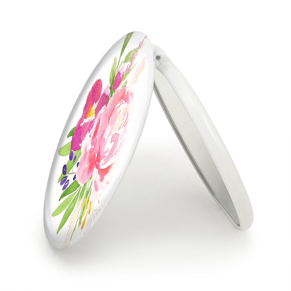 آینه های تاشو گل خندالو، از جنس پلاستیک فشرده ABS تولید شده و به رنگ سفید می باشد. یکی از آینه ها ابعاد واقعی را نشان داده و دیگری با قابلیت بزرگنمایی، جزئیات را بهتر نمایش می دهد. ابعاد هر یک از آینه ها، دایره ای به قطر 7.5 سانت می باشد که نه خیلی بزرگ و غیر قابل استفاده در کیف آرایشی ست و نه خیلی کوچک که تصویر خاصی در آن مشاهده نشود. آینه تاشو گل سایزی استاندارد و کارآمد دارد و در هر کیفی جا میگیرد. چاپ طرح بوسیله چاپگرهای دیجیتال شش رنگ با شفافیت و کیفیتی مثال زدنی بر روی یک وجه از بدنه ی آینه انجام گرفته و با روکش لمینت حرارتی پوشیده شده که در مقابل آسیب و خط و خش مقاوم بوده و کیفیت بالایی دارد. درب آینه بوسیله قفل بدنه ی آن، باز نمی ماند و کاملا بسته می شود و مناسب قرار گیری در کیف لوازم آرایش و کیف های کوچک دستی نیز هست. آینه های تاشو گل خندالو با تنوع طرحی بسیار بالا، سلیقه هر نوع مخاطبی را تامین میکند.