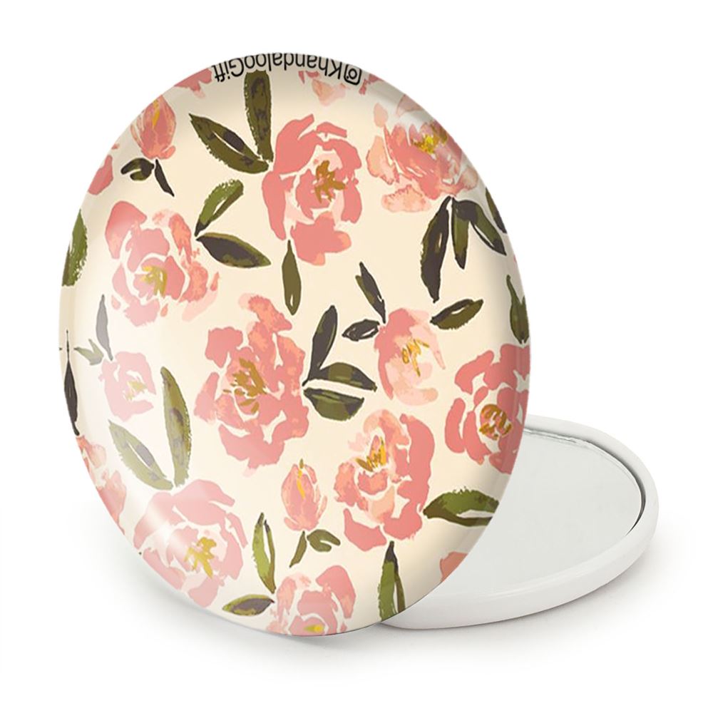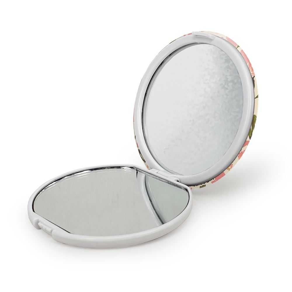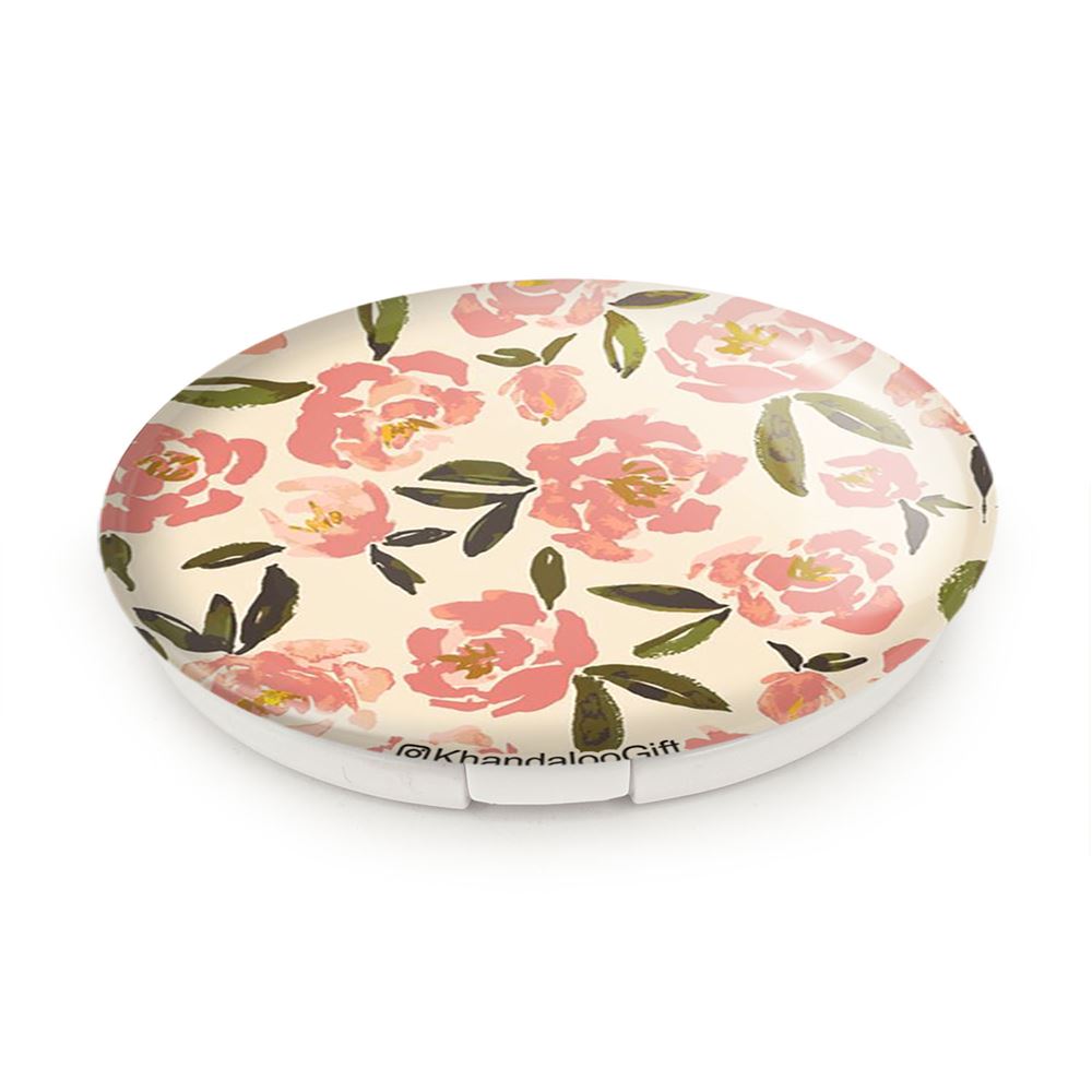 آینه های تاشو گل خندالو، از جنس پلاستیک فشرده ABS تولید شده و به رنگ سفید می باشد. یکی از آینه ها ابعاد واقعی را نشان داده و دیگری با قابلیت بزرگنمایی، جزئیات را بهتر نمایش می دهد. ابعاد هر یک از آینه ها، دایره ای به قطر 7.5 سانت می باشد که نه خیلی بزرگ و غیر قابل استفاده در کیف آرایشی ست و نه خیلی کوچک که تصویر خاصی در آن مشاهده نشود. آینه تاشو گل سایزی استاندارد و کارآمد دارد و در هر کیفی جا میگیرد. چاپ طرح بوسیله چاپگرهای دیجیتال شش رنگ با شفافیت و کیفیتی مثال زدنی بر روی یک وجه از بدنه ی آینه انجام گرفته و با روکش لمینت حرارتی پوشیده شده که در مقابل آسیب و خط و خش مقاوم بوده و کیفیت بالایی دارد. درب آینه بوسیله قفل بدنه ی آن، باز نمی ماند و کاملا بسته می شود و مناسب قرار گیری در کیف لوازم آرایش و کیف های کوچک دستی نیز هست. آینه های تاشو گل خندالو با تنوع طرحی بسیار بالا، سلیقه هر نوع مخاطبی را تامین میکند.