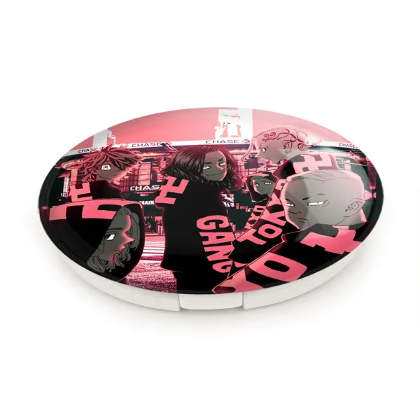 آینه های تاشو گنگ تومان انیمه توکیو ریونجرز خندالو، از جنس پلاستیک فشرده ABS تولید شده و به رنگ سفید می باشد. یکی از آینه ها ابعاد واقعی را نشان داده و دیگری با قابلیت بزرگنمایی، جزئیات را بهتر نمایش می دهد. ابعاد هر یک از آینه ها، دایره ای به قطر 7.5 سانت می باشد که نه خیلی بزرگ و غیر قابل استفاده در کیف آرایشی ست و نه خیلی کوچک که تصویر خاصی در آن مشاهده نشود. آینه تاشو گنگ تومان انیمه توکیو ریونجرز سایزی استاندارد و کارآمد دارد و در هر کیفی جا میگیرد. چاپ طرح بوسیله چاپگرهای دیجیتال شش رنگ با شفافیت و کیفیتی مثال زدنی بر روی یک وجه از بدنه ی آینه انجام گرفته و با روکش لمینت حرارتی پوشیده شده که در مقابل آسیب و خط و خش مقاوم بوده و کیفیت بالایی دارد. درب آینه بوسیله قفل بدنه ی آن، باز نمی ماند و کاملا بسته می شود و مناسب قرار گیری در کیف لوازم آرایش و کیف های کوچک دستی نیز هست. آینه های تاشو گنگ تومان انیمه توکیو ریونجرز خندالو با تنوع طرحی بسیار بالا، سلیقه هر نوع مخاطبی را تامین میکند.