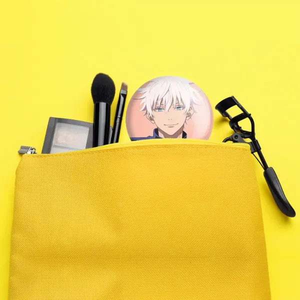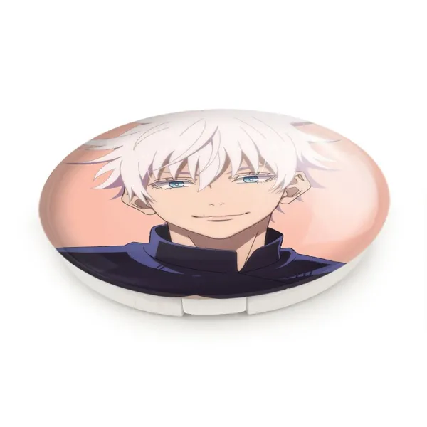 آینه های تاشو گوجو ساتورو انیمه جوجوتسو کایزن Jujutsu Kaisen خندالو، از جنس پلاستیک فشرده ABS تولید شده و به رنگ سفید می باشد. یکی از آینه ها ابعاد واقعی را نشان داده و دیگری با قابلیت بزرگنمایی، جزئیات را بهتر نمایش می دهد. ابعاد هر یک از آینه ها، دایره ای به قطر 7.5 سانت می باشد که نه خیلی بزرگ و غیر قابل استفاده در کیف آرایشی ست و نه خیلی کوچک که تصویر خاصی در آن مشاهده نشود. آینه تاشو گوجو ساتورو انیمه جوجوتسو کایزن Jujutsu Kaisen سایزی استاندارد و کارآمد دارد و در هر کیفی جا میگیرد. چاپ طرح بوسیله چاپگرهای دیجیتال شش رنگ با شفافیت و کیفیتی مثال زدنی بر روی یک وجه از بدنه ی آینه انجام گرفته و با روکش لمینت حرارتی پوشیده شده که در مقابل آسیب و خط و خش مقاوم بوده و کیفیت بالایی دارد. درب آینه بوسیله قفل بدنه ی آن، باز نمی ماند و کاملا بسته می شود و مناسب قرار گیری در کیف لوازم آرایش و کیف های کوچک دستی نیز هست. آینه های تاشو گوجو ساتورو انیمه جوجوتسو کایزن Jujutsu Kaisen خندالو با تنوع طرحی بسیار بالا، سلیقه هر نوع مخاطبی را تامین میکند.