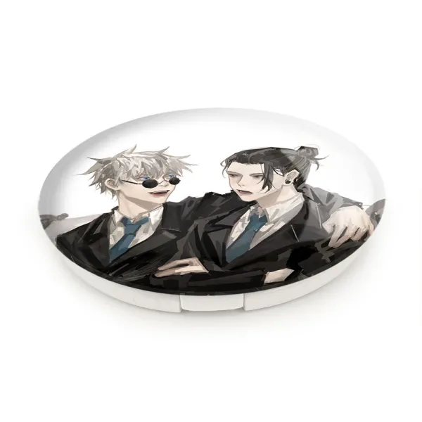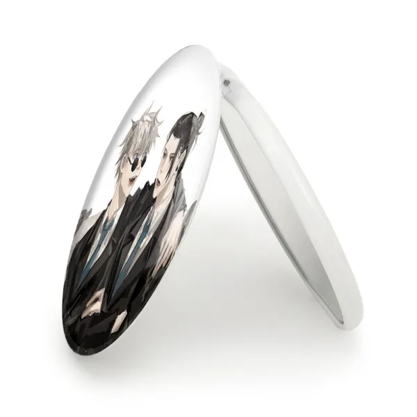 آینه های تاشو گوجو و گتو انیمه جوجوتسو کایزن خندالو، از جنس پلاستیک فشرده ABS تولید شده و به رنگ سفید می باشد. یکی از آینه ها ابعاد واقعی را نشان داده و دیگری با قابلیت بزرگنمایی، جزئیات را بهتر نمایش می دهد. ابعاد هر یک از آینه ها، دایره ای به قطر 7.5 سانت می باشد که نه خیلی بزرگ و غیر قابل استفاده در کیف آرایشی ست و نه خیلی کوچک که تصویر خاصی در آن مشاهده نشود. آینه تاشو گوجو و گتو انیمه جوجوتسو کایزن سایزی استاندارد و کارآمد دارد و در هر کیفی جا میگیرد. چاپ طرح بوسیله چاپگرهای دیجیتال شش رنگ با شفافیت و کیفیتی مثال زدنی بر روی یک وجه از بدنه ی آینه انجام گرفته و با روکش لمینت حرارتی پوشیده شده که در مقابل آسیب و خط و خش مقاوم بوده و کیفیت بالایی دارد. درب آینه بوسیله قفل بدنه ی آن، باز نمی ماند و کاملا بسته می شود و مناسب قرار گیری در کیف لوازم آرایش و کیف های کوچک دستی نیز هست. آینه های تاشو گوجو و گتو انیمه جوجوتسو کایزن خندالو با تنوع طرحی بسیار بالا، سلیقه هر نوع مخاطبی را تامین میکند.