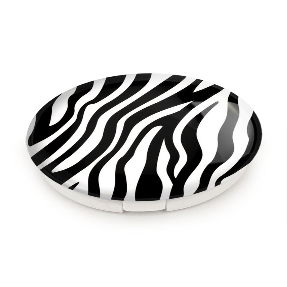 آینه های تاشو گورخر خندالو، از جنس پلاستیک فشرده ABS تولید شده و به رنگ سفید می باشد. یکی از آینه ها ابعاد واقعی را نشان داده و دیگری با قابلیت بزرگنمایی، جزئیات را بهتر نمایش می دهد. ابعاد هر یک از آینه ها، دایره ای به قطر 7.5 سانت می باشد که نه خیلی بزرگ و غیر قابل استفاده در کیف آرایشی ست و نه خیلی کوچک که تصویر خاصی در آن مشاهده نشود. آینه تاشو گورخر سایزی استاندارد و کارآمد دارد و در هر کیفی جا میگیرد. چاپ طرح بوسیله چاپگرهای دیجیتال شش رنگ با شفافیت و کیفیتی مثال زدنی بر روی یک وجه از بدنه ی آینه انجام گرفته و با روکش لمینت حرارتی پوشیده شده که در مقابل آسیب و خط و خش مقاوم بوده و کیفیت بالایی دارد. درب آینه بوسیله قفل بدنه ی آن، باز نمی ماند و کاملا بسته می شود و مناسب قرار گیری در کیف لوازم آرایش و کیف های کوچک دستی نیز هست. آینه های تاشو گورخر خندالو با تنوع طرحی بسیار بالا، سلیقه هر نوع مخاطبی را تامین میکند.