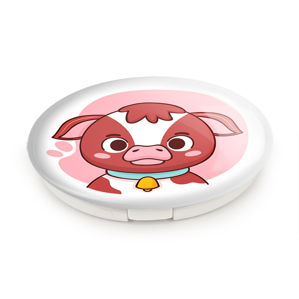 آینه های تاشو گوساله حیوانات بامزه خندالو، از جنس پلاستیک فشرده ABS تولید شده و به رنگ سفید می باشد. یکی از آینه ها ابعاد واقعی را نشان داده و دیگری با قابلیت بزرگنمایی، جزئیات را بهتر نمایش می دهد. ابعاد هر یک از آینه ها، دایره ای به قطر 7.5 سانت می باشد که نه خیلی بزرگ و غیر قابل استفاده در کیف آرایشی ست و نه خیلی کوچک که تصویر خاصی در آن مشاهده نشود. آینه تاشو گوساله حیوانات بامزه سایزی استاندارد و کارآمد دارد و در هر کیفی جا میگیرد. چاپ طرح بوسیله چاپگرهای دیجیتال شش رنگ با شفافیت و کیفیتی مثال زدنی بر روی یک وجه از بدنه ی آینه انجام گرفته و با روکش لمینت حرارتی پوشیده شده که در مقابل آسیب و خط و خش مقاوم بوده و کیفیت بالایی دارد. درب آینه بوسیله قفل بدنه ی آن، باز نمی ماند و کاملا بسته می شود و مناسب قرار گیری در کیف لوازم آرایش و کیف های کوچک دستی نیز هست. آینه های تاشو گوساله حیوانات بامزه خندالو با تنوع طرحی بسیار بالا، سلیقه هر نوع مخاطبی را تامین میکند.