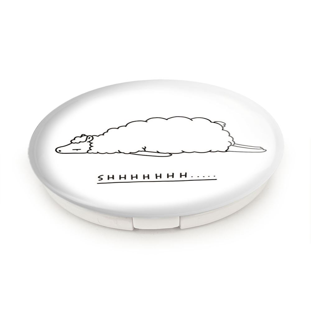 آینه های تاشو گوسفند خندالو، از جنس پلاستیک فشرده ABS تولید شده و به رنگ سفید می باشد. یکی از آینه ها ابعاد واقعی را نشان داده و دیگری با قابلیت بزرگنمایی، جزئیات را بهتر نمایش می دهد. ابعاد هر یک از آینه ها، دایره ای به قطر 7.5 سانت می باشد که نه خیلی بزرگ و غیر قابل استفاده در کیف آرایشی ست و نه خیلی کوچک که تصویر خاصی در آن مشاهده نشود. آینه تاشو گوسفند سایزی استاندارد و کارآمد دارد و در هر کیفی جا میگیرد. چاپ طرح بوسیله چاپگرهای دیجیتال شش رنگ با شفافیت و کیفیتی مثال زدنی بر روی یک وجه از بدنه ی آینه انجام گرفته و با روکش لمینت حرارتی پوشیده شده که در مقابل آسیب و خط و خش مقاوم بوده و کیفیت بالایی دارد. درب آینه بوسیله قفل بدنه ی آن، باز نمی ماند و کاملا بسته می شود و مناسب قرار گیری در کیف لوازم آرایش و کیف های کوچک دستی نیز هست. آینه های تاشو گوسفند خندالو با تنوع طرحی بسیار بالا، سلیقه هر نوع مخاطبی را تامین میکند.