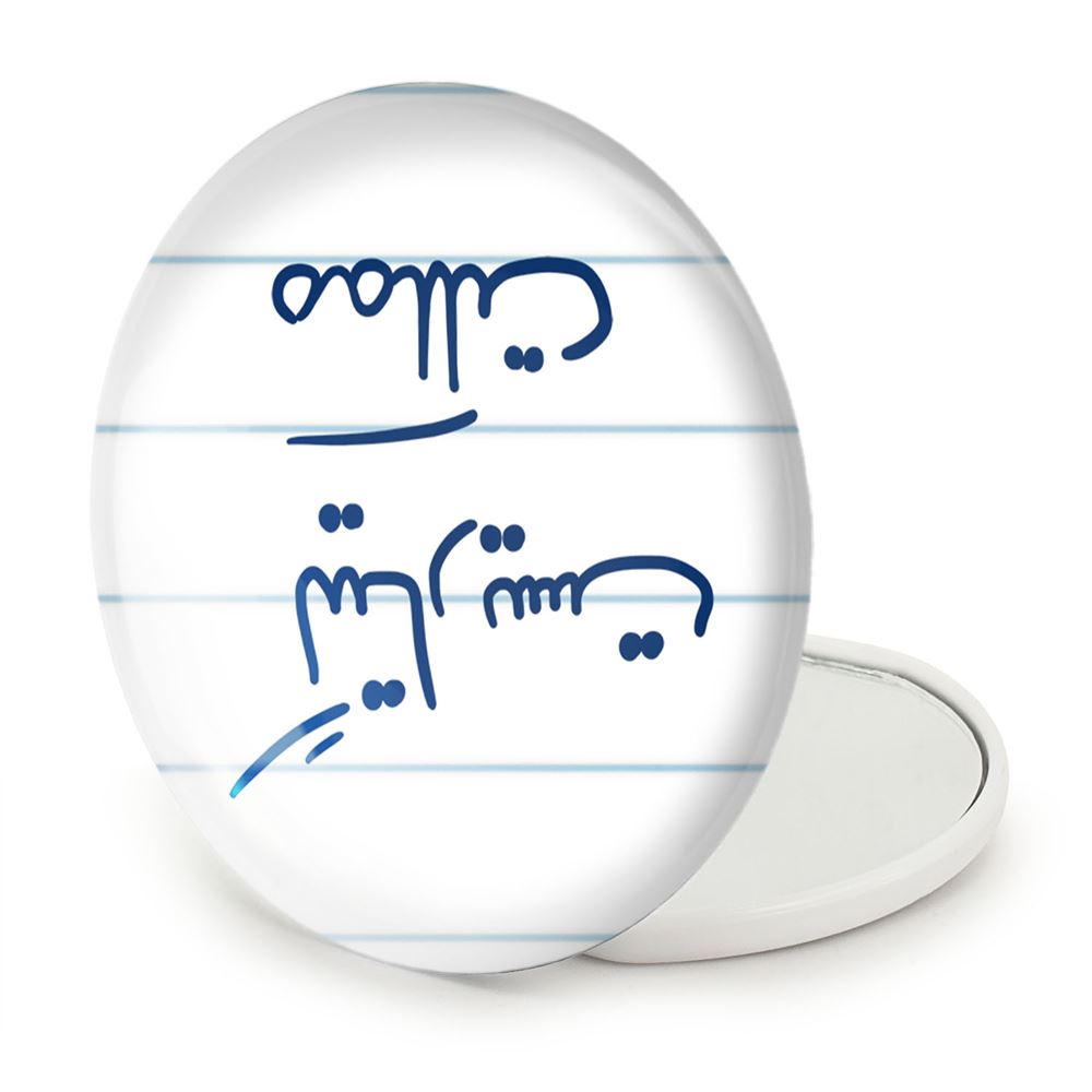 آینه های تاشو گیتاریست مملکت خندالو، از جنس پلاستیک فشرده ABS تولید شده و به رنگ سفید می باشد. یکی از آینه ها ابعاد واقعی را نشان داده و دیگری با قابلیت بزرگنمایی، جزئیات را بهتر نمایش می دهد. ابعاد هر یک از آینه ها، دایره ای به قطر 7.5 سانت می باشد که نه خیلی بزرگ و غیر قابل استفاده در کیف آرایشی ست و نه خیلی کوچک که تصویر خاصی در آن مشاهده نشود. آینه تاشو گیتاریست مملکت سایزی استاندارد و کارآمد دارد و در هر کیفی جا میگیرد. چاپ طرح بوسیله چاپگرهای دیجیتال شش رنگ با شفافیت و کیفیتی مثال زدنی بر روی یک وجه از بدنه ی آینه انجام گرفته و با روکش لمینت حرارتی پوشیده شده که در مقابل آسیب و خط و خش مقاوم بوده و کیفیت بالایی دارد. درب آینه بوسیله قفل بدنه ی آن، باز نمی ماند و کاملا بسته می شود و مناسب قرار گیری در کیف لوازم آرایش و کیف های کوچک دستی نیز هست. آینه های تاشو گیتاریست مملکت خندالو با تنوع طرحی بسیار بالا، سلیقه هر نوع مخاطبی را تامین میکند.