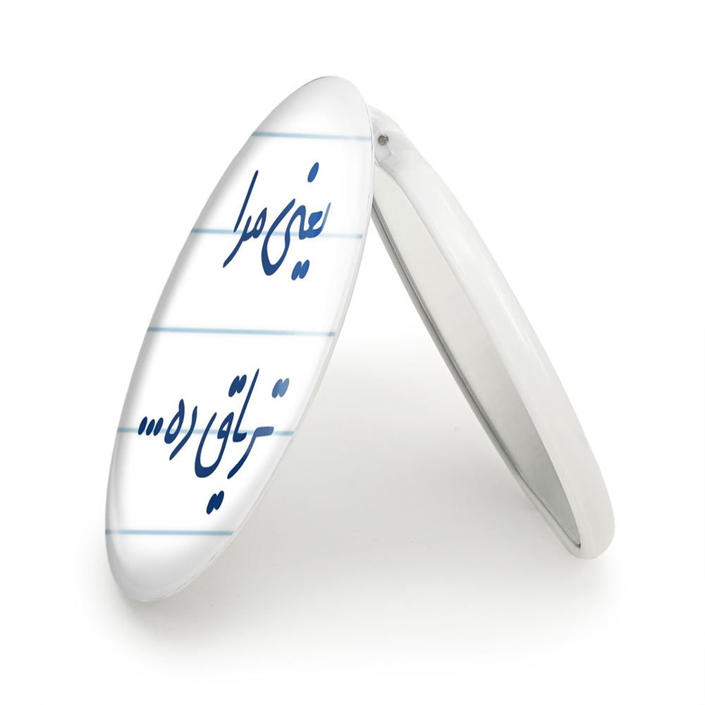 آینه های تاشو یعنی مرا تریاق ده… خندالو، از جنس پلاستیک فشرده ABS تولید شده و به رنگ سفید می باشد. یکی از آینه ها ابعاد واقعی را نشان داده و دیگری با قابلیت بزرگنمایی، جزئیات را بهتر نمایش می دهد. ابعاد هر یک از آینه ها، دایره ای به قطر 7.5 سانت می باشد که نه خیلی بزرگ و غیر قابل استفاده در کیف آرایشی ست و نه خیلی کوچک که تصویر خاصی در آن مشاهده نشود. آینه تاشو یعنی مرا تریاق ده… سایزی استاندارد و کارآمد دارد و در هر کیفی جا میگیرد. چاپ طرح بوسیله چاپگرهای دیجیتال شش رنگ با شفافیت و کیفیتی مثال زدنی بر روی یک وجه از بدنه ی آینه انجام گرفته و با روکش لمینت حرارتی پوشیده شده که در مقابل آسیب و خط و خش مقاوم بوده و کیفیت بالایی دارد. درب آینه بوسیله قفل بدنه ی آن، باز نمی ماند و کاملا بسته می شود و مناسب قرار گیری در کیف لوازم آرایش و کیف های کوچک دستی نیز هست. آینه های تاشو یعنی مرا تریاق ده… خندالو با تنوع طرحی بسیار بالا، سلیقه هر نوع مخاطبی را تامین میکند.