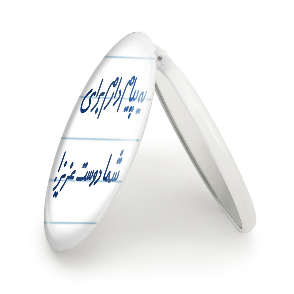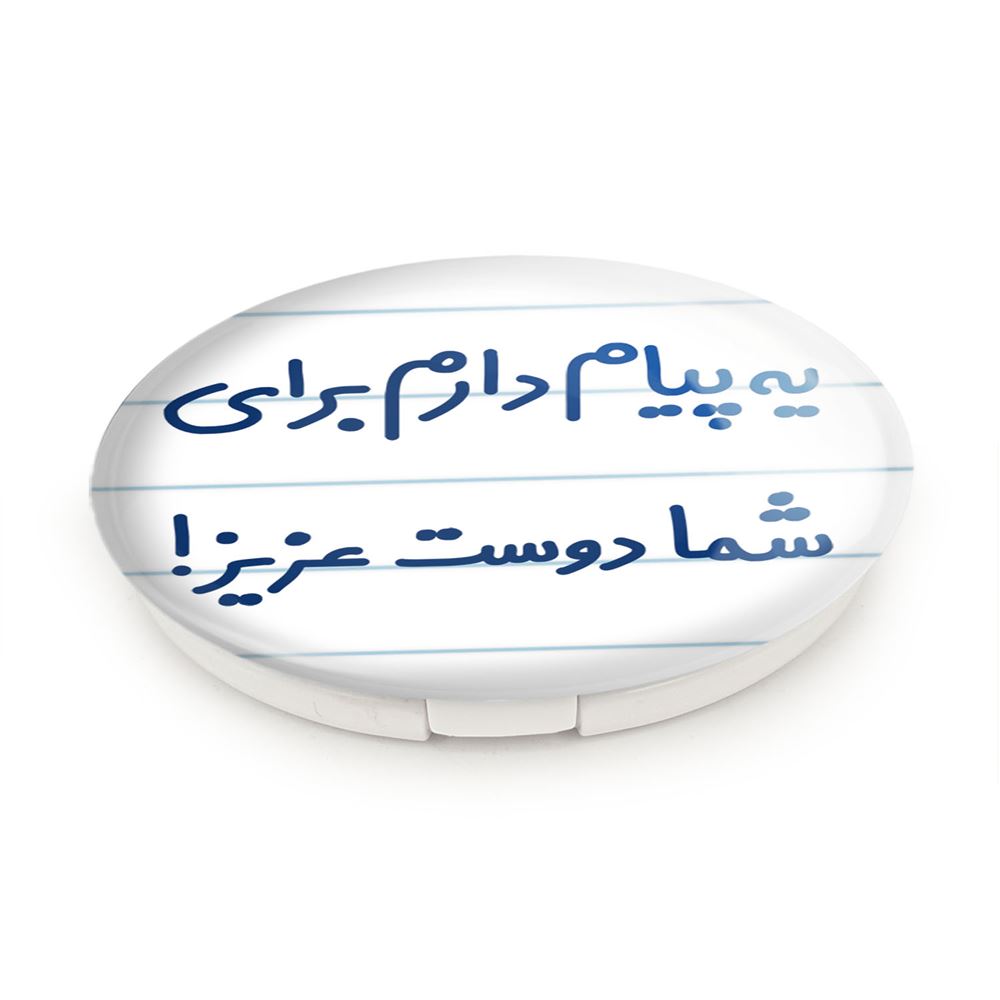 آینه های تاشو یه پیام دارم برای شما دوست عزیز! خندالو، از جنس پلاستیک فشرده ABS تولید شده و به رنگ سفید می باشد. یکی از آینه ها ابعاد واقعی را نشان داده و دیگری با قابلیت بزرگنمایی، جزئیات را بهتر نمایش می دهد. ابعاد هر یک از آینه ها، دایره ای به قطر 7.5 سانت می باشد که نه خیلی بزرگ و غیر قابل استفاده در کیف آرایشی ست و نه خیلی کوچک که تصویر خاصی در آن مشاهده نشود. آینه تاشو یه پیام دارم برای شما دوست عزیز! سایزی استاندارد و کارآمد دارد و در هر کیفی جا میگیرد. چاپ طرح بوسیله چاپگرهای دیجیتال شش رنگ با شفافیت و کیفیتی مثال زدنی بر روی یک وجه از بدنه ی آینه انجام گرفته و با روکش لمینت حرارتی پوشیده شده که در مقابل آسیب و خط و خش مقاوم بوده و کیفیت بالایی دارد. درب آینه بوسیله قفل بدنه ی آن، باز نمی ماند و کاملا بسته می شود و مناسب قرار گیری در کیف لوازم آرایش و کیف های کوچک دستی نیز هست. آینه های تاشو یه پیام دارم برای شما دوست عزیز! خندالو با تنوع طرحی بسیار بالا، سلیقه هر نوع مخاطبی را تامین میکند.