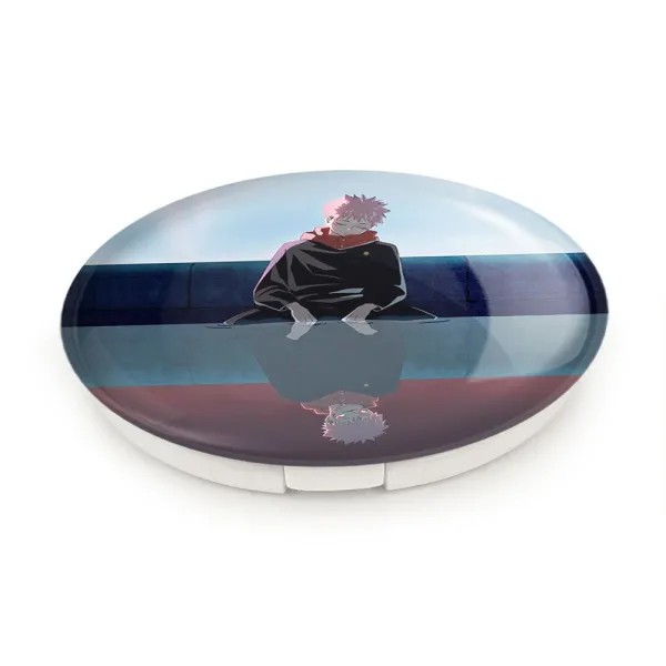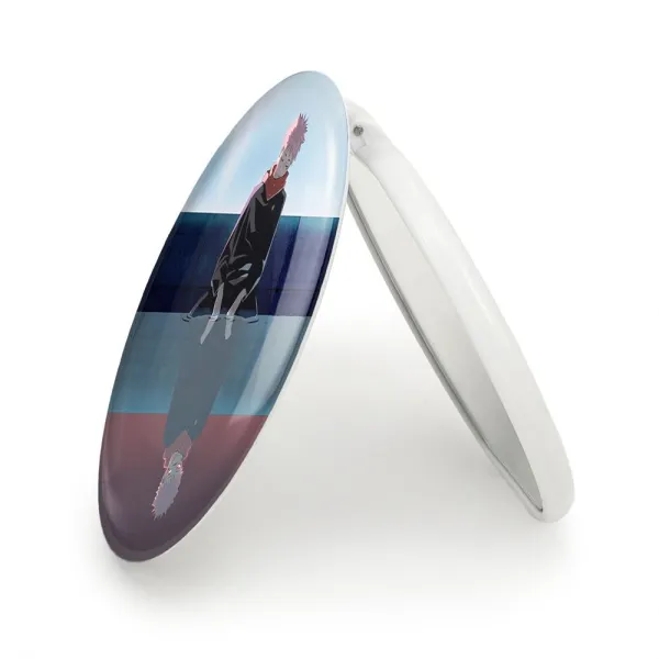 آینه های تاشو یوجی و سوکونا انیمه جوجوتسو کایزن خندالو، از جنس پلاستیک فشرده ABS تولید شده و به رنگ سفید می باشد. یکی از آینه ها ابعاد واقعی را نشان داده و دیگری با قابلیت بزرگنمایی، جزئیات را بهتر نمایش می دهد. ابعاد هر یک از آینه ها، دایره ای به قطر 7.5 سانت می باشد که نه خیلی بزرگ و غیر قابل استفاده در کیف آرایشی ست و نه خیلی کوچک که تصویر خاصی در آن مشاهده نشود. آینه تاشو یوجی و سوکونا انیمه جوجوتسو کایزن سایزی استاندارد و کارآمد دارد و در هر کیفی جا میگیرد. چاپ طرح بوسیله چاپگرهای دیجیتال شش رنگ با شفافیت و کیفیتی مثال زدنی بر روی یک وجه از بدنه ی آینه انجام گرفته و با روکش لمینت حرارتی پوشیده شده که در مقابل آسیب و خط و خش مقاوم بوده و کیفیت بالایی دارد. درب آینه بوسیله قفل بدنه ی آن، باز نمی ماند و کاملا بسته می شود و مناسب قرار گیری در کیف لوازم آرایش و کیف های کوچک دستی نیز هست. آینه های تاشو یوجی و سوکونا انیمه جوجوتسو کایزن خندالو با تنوع طرحی بسیار بالا، سلیقه هر نوع مخاطبی را تامین میکند.