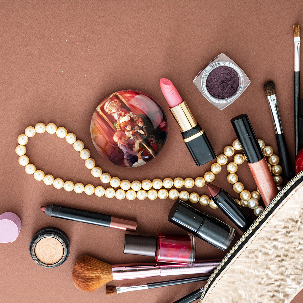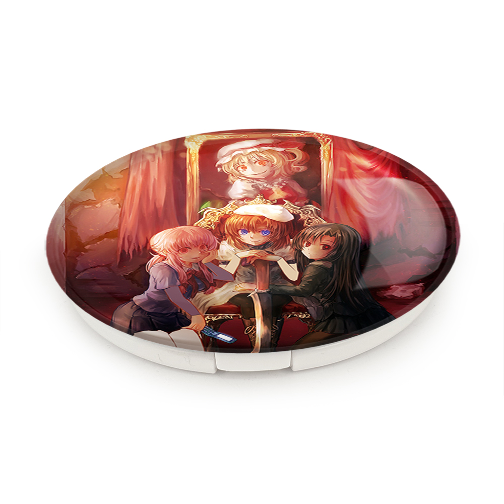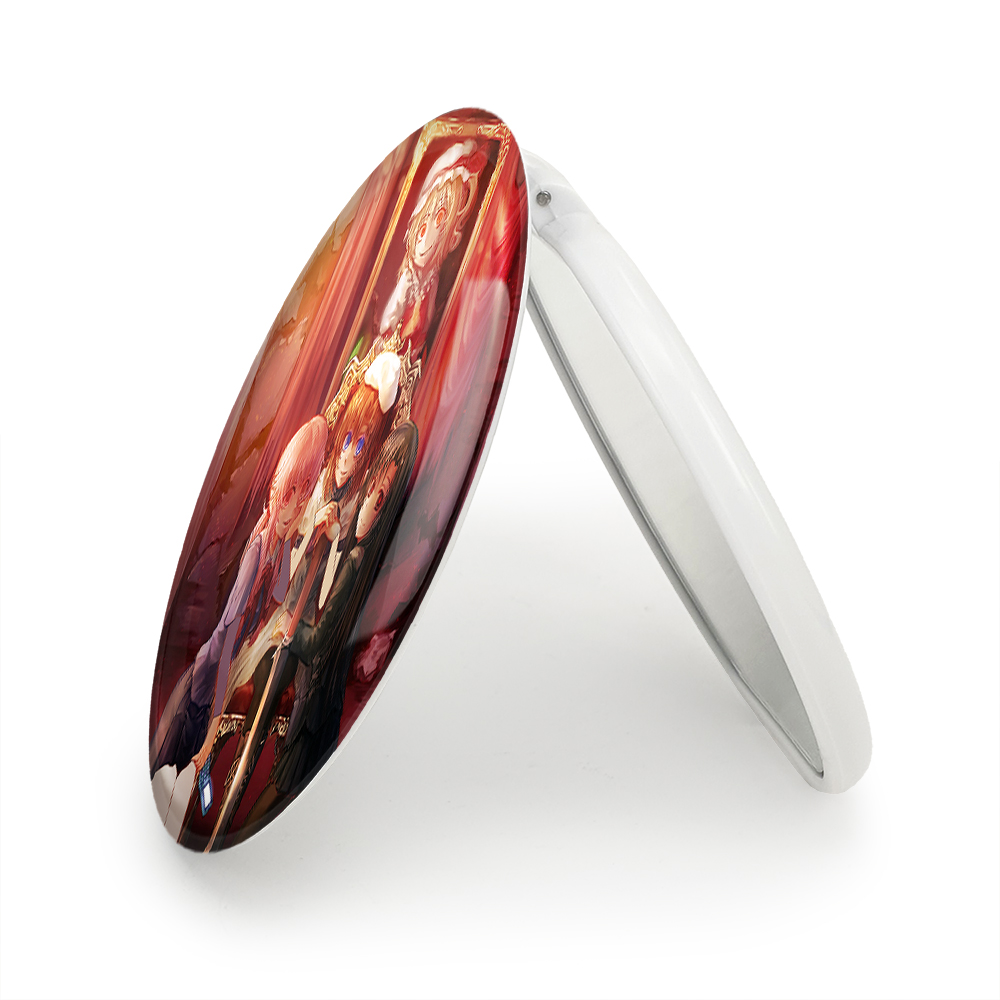 آینه های تاشو یونو و رنه انیمه میرای نیکی خندالو، از جنس پلاستیک فشرده ABS تولید شده و به رنگ سفید می باشد. یکی از آینه ها ابعاد واقعی را نشان داده و دیگری با قابلیت بزرگنمایی، جزئیات را بهتر نمایش می دهد. ابعاد هر یک از آینه ها، دایره ای به قطر 7.5 سانت می باشد که نه خیلی بزرگ و غیر قابل استفاده در کیف آرایشی ست و نه خیلی کوچک که تصویر خاصی در آن مشاهده نشود. آینه تاشو یونو و رنه انیمه میرای نیکی سایزی استاندارد و کارآمد دارد و در هر کیفی جا میگیرد. چاپ طرح بوسیله چاپگرهای دیجیتال شش رنگ با شفافیت و کیفیتی مثال زدنی بر روی یک وجه از بدنه ی آینه انجام گرفته و با روکش لمینت حرارتی پوشیده شده که در مقابل آسیب و خط و خش مقاوم بوده و کیفیت بالایی دارد. درب آینه بوسیله قفل بدنه ی آن، باز نمی ماند و کاملا بسته می شود و مناسب قرار گیری در کیف لوازم آرایش و کیف های کوچک دستی نیز هست. آینه های تاشو یونو و رنه انیمه میرای نیکی خندالو با تنوع طرحی بسیار بالا، سلیقه هر نوع مخاطبی را تامین میکند.