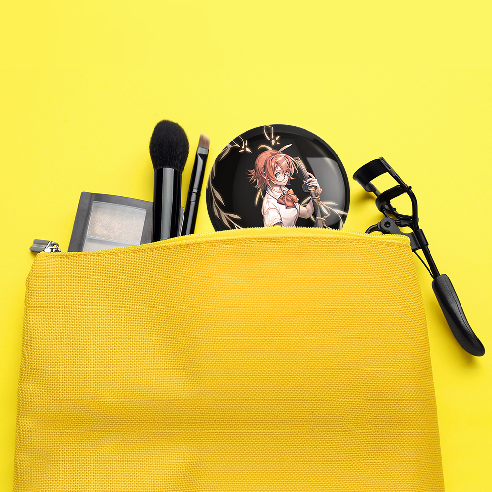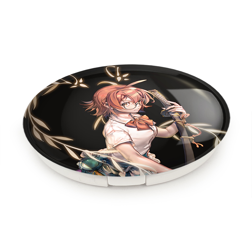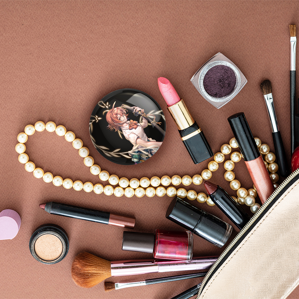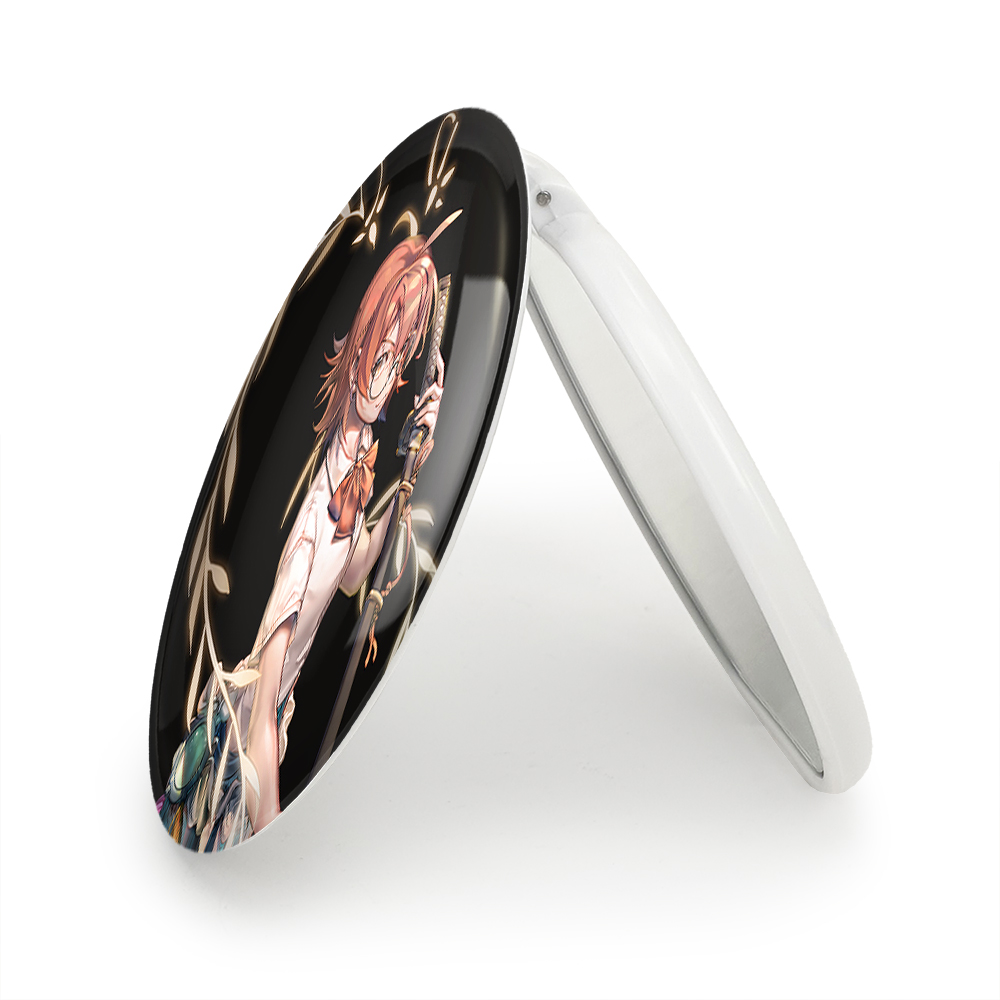 آینه های تاشو یو میرا انیمه خدای دبیرستان خندالو، از جنس پلاستیک فشرده ABS تولید شده و به رنگ سفید می باشد. یکی از آینه ها ابعاد واقعی را نشان داده و دیگری با قابلیت بزرگنمایی، جزئیات را بهتر نمایش می دهد. ابعاد هر یک از آینه ها، دایره ای به قطر 7.5 سانت می باشد که نه خیلی بزرگ و غیر قابل استفاده در کیف آرایشی ست و نه خیلی کوچک که تصویر خاصی در آن مشاهده نشود. آینه تاشو یو میرا انیمه خدای دبیرستان سایزی استاندارد و کارآمد دارد و در هر کیفی جا میگیرد. چاپ طرح بوسیله چاپگرهای دیجیتال شش رنگ با شفافیت و کیفیتی مثال زدنی بر روی یک وجه از بدنه ی آینه انجام گرفته و با روکش لمینت حرارتی پوشیده شده که در مقابل آسیب و خط و خش مقاوم بوده و کیفیت بالایی دارد. درب آینه بوسیله قفل بدنه ی آن، باز نمی ماند و کاملا بسته می شود و مناسب قرار گیری در کیف لوازم آرایش و کیف های کوچک دستی نیز هست. آینه های تاشو یو میرا انیمه خدای دبیرستان خندالو با تنوع طرحی بسیار بالا، سلیقه هر نوع مخاطبی را تامین میکند.