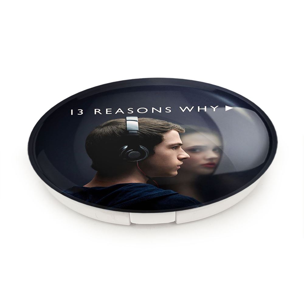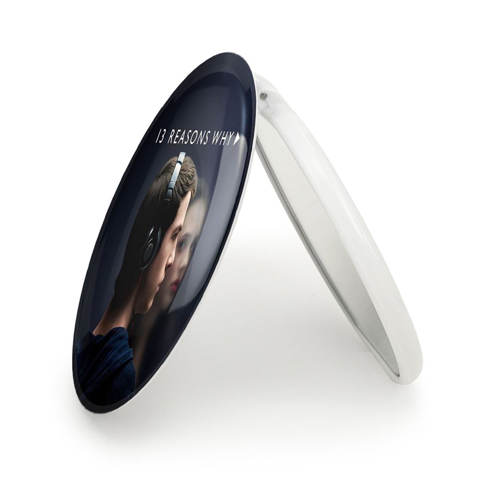 آینه های تاشو 13دلیل برای اینکه Reasons Why13 خندالو، از جنس پلاستیک فشرده ABS تولید شده و به رنگ سفید می باشد. یکی از آینه ها ابعاد واقعی را نشان داده و دیگری با قابلیت بزرگنمایی، جزئیات را بهتر نمایش می دهد. ابعاد هر یک از آینه ها، دایره ای به قطر 7.5 سانت می باشد که نه خیلی بزرگ و غیر قابل استفاده در کیف آرایشی ست و نه خیلی کوچک که تصویر خاصی در آن مشاهده نشود. آینه تاشو 13دلیل برای اینکه Reasons Why13 سایزی استاندارد و کارآمد دارد و در هر کیفی جا میگیرد. چاپ طرح بوسیله چاپگرهای دیجیتال شش رنگ با شفافیت و کیفیتی مثال زدنی بر روی یک وجه از بدنه ی آینه انجام گرفته و با روکش لمینت حرارتی پوشیده شده که در مقابل آسیب و خط و خش مقاوم بوده و کیفیت بالایی دارد. درب آینه بوسیله قفل بدنه ی آن، باز نمی ماند و کاملا بسته می شود و مناسب قرار گیری در کیف لوازم آرایش و کیف های کوچک دستی نیز هست. آینه های تاشو 13دلیل برای اینکه Reasons Why13 خندالو با تنوع طرحی بسیار بالا، سلیقه هر نوع مخاطبی را تامین میکند.