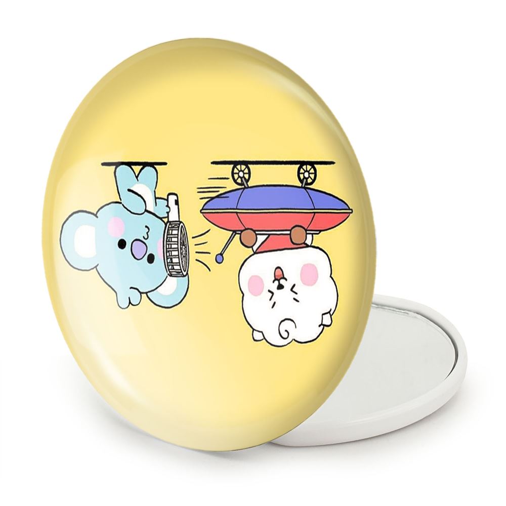 آینه های تاشو BT21 خندالو، از جنس پلاستیک فشرده ABS تولید شده و به رنگ سفید می باشد. یکی از آینه ها ابعاد واقعی را نشان داده و دیگری با قابلیت بزرگنمایی، جزئیات را بهتر نمایش می دهد.