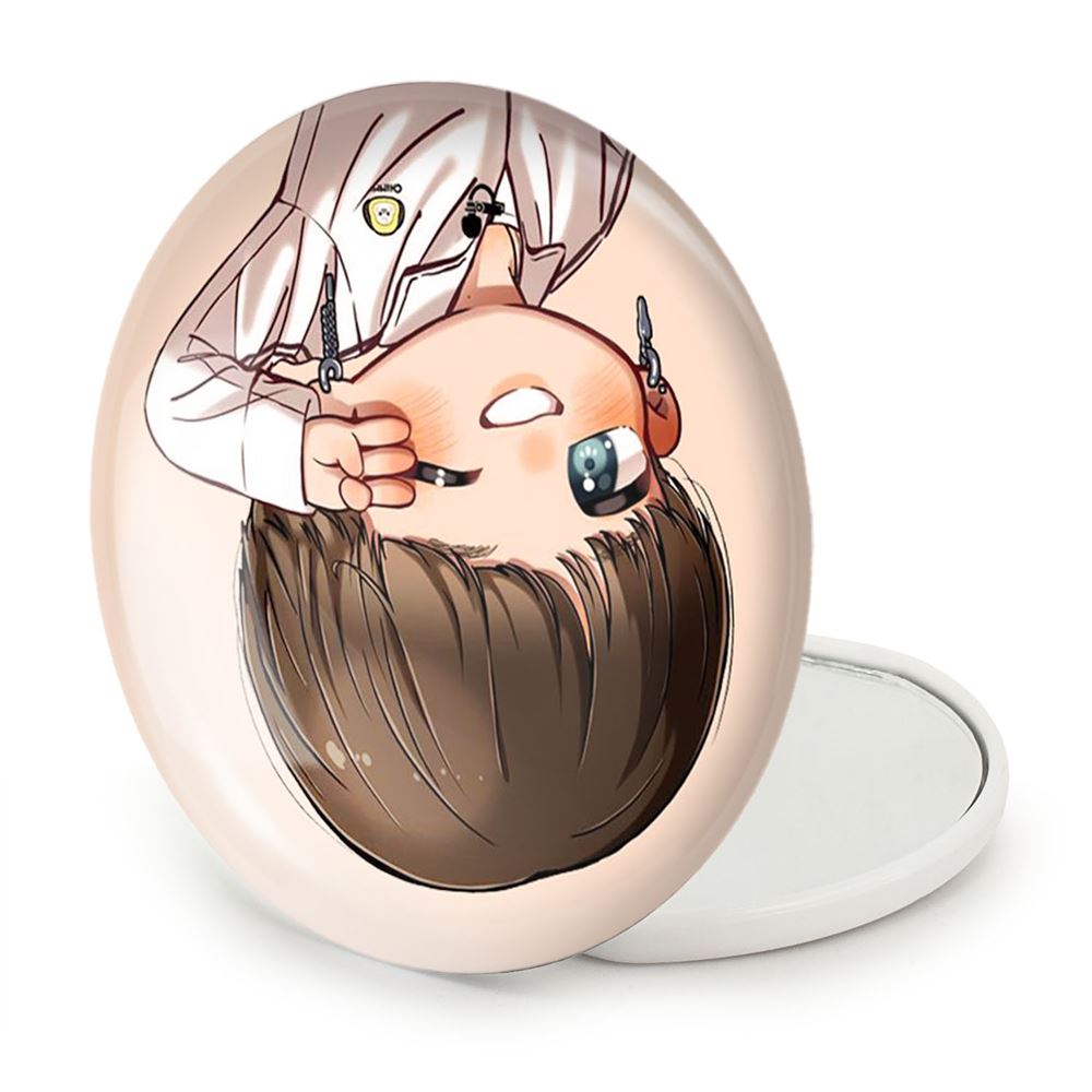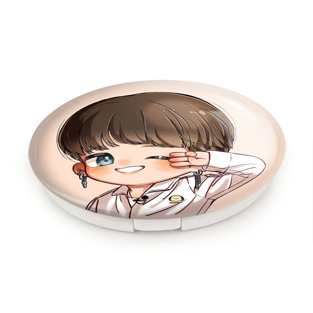 آینه های تاشو BT21 خندالو، از جنس پلاستیک فشرده ABS تولید شده و به رنگ سفید می باشد. یکی از آینه ها ابعاد واقعی را نشان داده و دیگری با قابلیت بزرگنمایی، جزئیات را بهتر نمایش می دهد. ابعاد هر یک از آینه ها، دایره ای به قطر 7.5 سانت می باشد که نه خیلی بزرگ و غیر قابل استفاده در کیف آرایشی ست و نه خیلی کوچک که تصویر خاصی در آن مشاهده نشود. آینه تاشو BT21 سایزی استاندارد و کارآمد دارد و در هر کیفی جا میگیرد. چاپ طرح بوسیله چاپگرهای دیجیتال شش رنگ با شفافیت و کیفیتی مثال زدنی بر روی یک وجه از بدنه ی آینه انجام گرفته و با روکش لمینت حرارتی پوشیده شده که در مقابل آسیب و خط و خش مقاوم بوده و کیفیت بالایی دارد. درب آینه بوسیله قفل بدنه ی آن، باز نمی ماند و کاملا بسته می شود و مناسب قرار گیری در کیف لوازم آرایش و کیف های کوچک دستی نیز هست. آینه های تاشو BT21 خندالو با تنوع طرحی بسیار بالا، سلیقه هر نوع مخاطبی را تامین میکند.