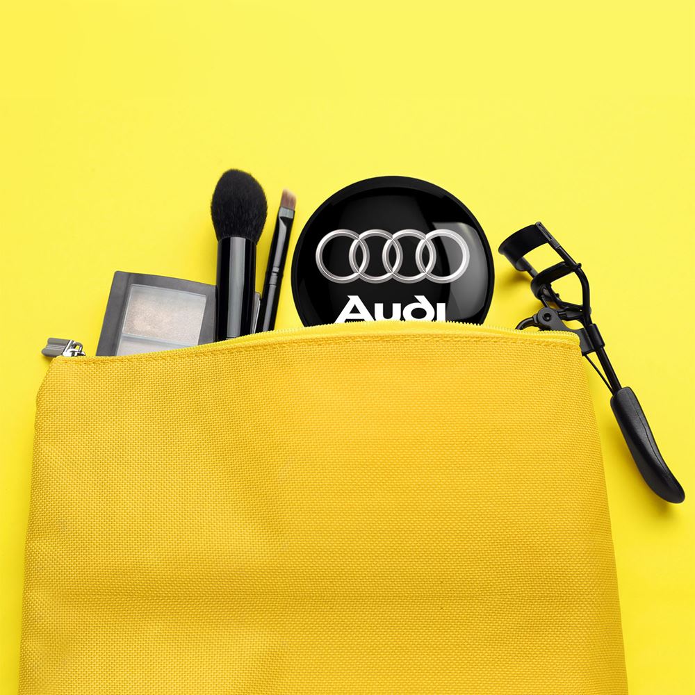 آینه های جیبی آئودی Audi خندالو دایره ای به قطر 7.5 سانتی متر می باشد که نه خیلی بزرگ و غیر قابل استفاده در کیف آرایشی ست و نه خیلی کوچک که تصویر خاصی در آن مشاهده نشود. سایزی استاندارد و کارآمد دارد و مناسب قرار گیری در کیف لوازم آرایش و کیف های کوچک دستی نیز هست. بدنه ی آینه جیبی آئودی Audi در قسمتی که آینه را در بر گرفته فلزی بوده و ظاهر براق و بسیار زیبایی دارد. چاپ طرح در پشت آینه بوسیله چاپگرهای دیجیتال شش رنگ با شفافیت و کیفیتی مثال زدنی انجام گرفته و با روکش لمینت حرارتی پوشیده شده که در مقابل آسیب و خط و خش مقاوم بوده و کیفیت بالایی دارد. آینه های جیبی آئودی Audi خندالو با تنوع طرحی بسیار بالا، سلیقه هر نوع مخاطبی را تامین میکند.