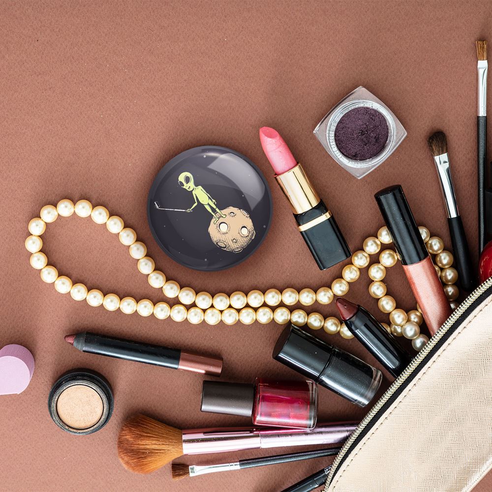 آینه های جیبی آدم فضایی خندالو دایره ای به قطر 7.5 سانتی متر می باشد که نه خیلی بزرگ و غیر قابل استفاده در کیف آرایشی ست و نه خیلی کوچک که تصویر خاصی در آن مشاهده نشود. سایزی استاندارد و کارآمد دارد و مناسب قرار گیری در کیف لوازم آرایش و کیف های کوچک دستی نیز هست.
