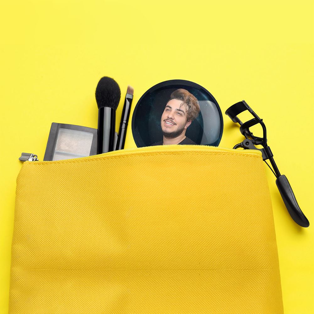 آینه های جیبی آرون افشار خندالو دایره ای به قطر 7.5 سانتی متر می باشد که نه خیلی بزرگ و غیر قابل استفاده در کیف آرایشی ست و نه خیلی کوچک که تصویر خاصی در آن مشاهده نشود. سایزی استاندارد و کارآمد دارد و مناسب قرار گیری در کیف لوازم آرایش و کیف های کوچک دستی نیز هست.