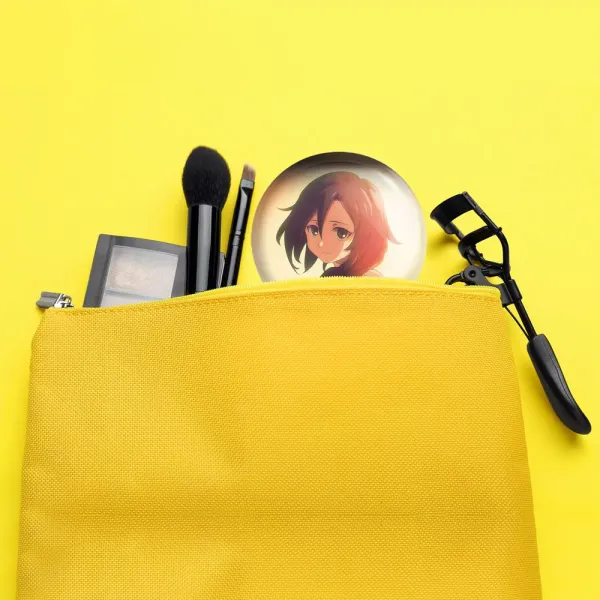 آینه های جیبی آکانه هیاکویا انیمه اسرافیل پایانی خندالو دایره ای به قطر 7.5 سانتی متر می باشد که نه خیلی بزرگ و غیر قابل استفاده در کیف آرایشی ست و نه خیلی کوچک که تصویر خاصی در آن مشاهده نشود. سایزی استاندارد و کارآمد دارد و مناسب قرار گیری در کیف لوازم آرایش و کیف های کوچک دستی نیز هست.