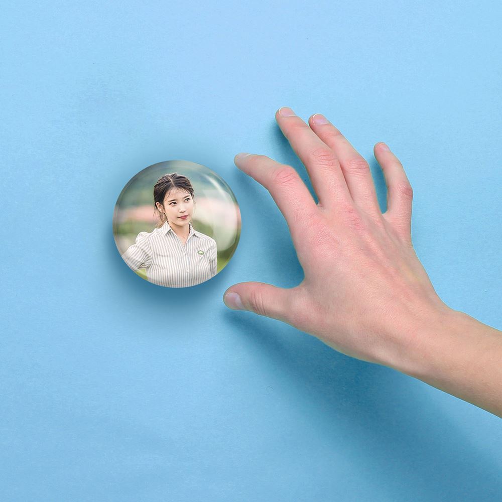 آینه های جیبی آیو IU خندالو دایره ای به قطر 7.5 سانتی متر می باشد که نه خیلی بزرگ و غیر قابل استفاده در کیف آرایشی ست و نه خیلی کوچک که تصویر خاصی در آن مشاهده نشود. سایزی استاندارد و کارآمد دارد و مناسب قرار گیری در کیف لوازم آرایش و کیف های کوچک دستی نیز هست.