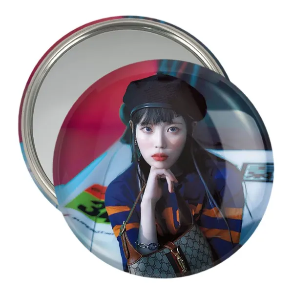 آینه های جیبی آیو IU خندالو دایره ای به قطر 7.5 سانتی متر می باشد که نه خیلی بزرگ و غیر قابل استفاده در کیف آرایشی ست و نه خیلی کوچک که تصویر خاصی در آن مشاهده نشود. سایزی استاندارد و کارآمد دارد و مناسب قرار گیری در کیف لوازم آرایش و کیف های کوچک دستی نیز هست.
