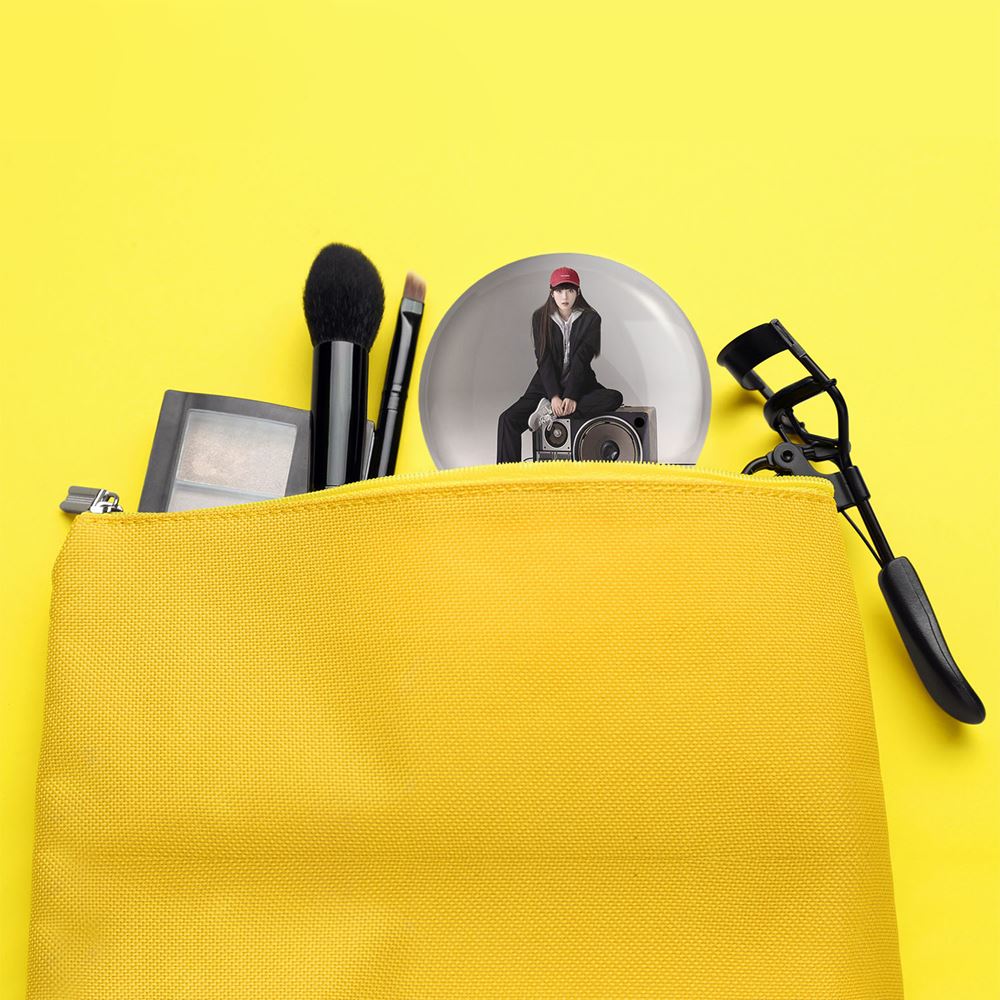 آینه های جیبی آیو IU خندالو دایره ای به قطر 7.5 سانتی متر می باشد که نه خیلی بزرگ و غیر قابل استفاده در کیف آرایشی ست و نه خیلی کوچک که تصویر خاصی در آن مشاهده نشود. سایزی استاندارد و کارآمد دارد و مناسب قرار گیری در کیف لوازم آرایش و کیف های کوچک دستی نیز هست.