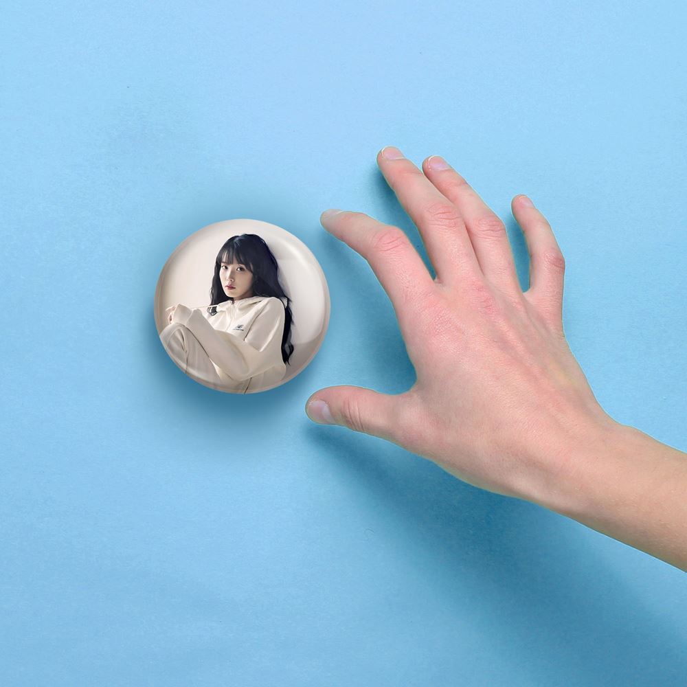آینه های جیبی آیو IU خندالو دایره ای به قطر 7.5 سانتی متر می باشد که نه خیلی بزرگ و غیر قابل استفاده در کیف آرایشی ست و نه خیلی کوچک که تصویر خاصی در آن مشاهده نشود. سایزی استاندارد و کارآمد دارد و مناسب قرار گیری در کیف لوازم آرایش و کیف های کوچک دستی نیز هست.