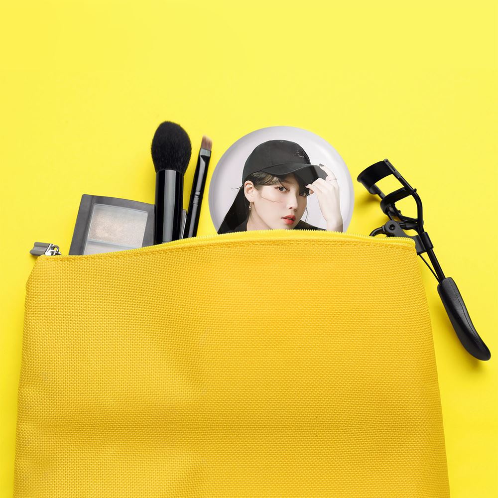 آینه های جیبی آیو IU خندالو دایره ای به قطر 7.5 سانتی متر می باشد که نه خیلی بزرگ و غیر قابل استفاده در کیف آرایشی ست و نه خیلی کوچک که تصویر خاصی در آن مشاهده نشود. سایزی استاندارد و کارآمد دارد و مناسب قرار گیری در کیف لوازم آرایش و کیف های کوچک دستی نیز هست.