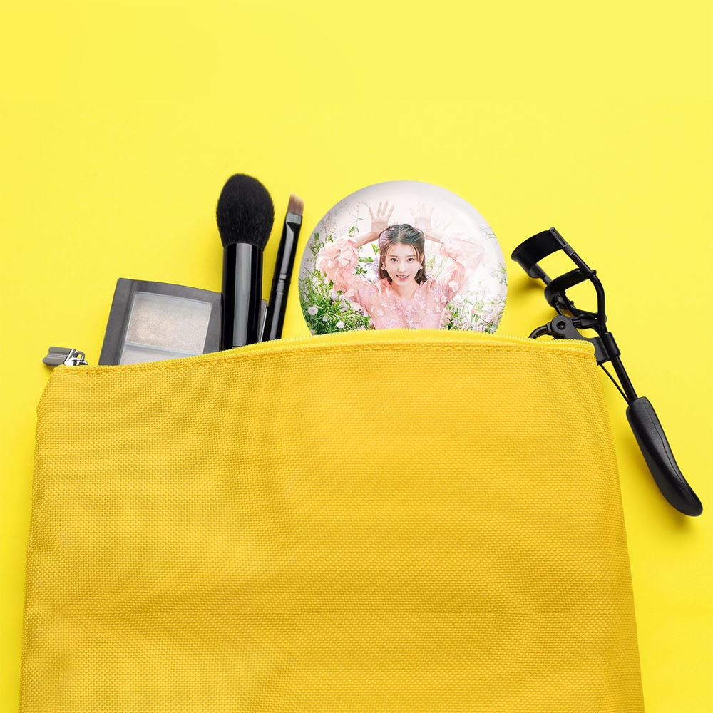 آینه های جیبی آیو IU خندالو دایره ای به قطر 7.5 سانتی متر می باشد که نه خیلی بزرگ و غیر قابل استفاده در کیف آرایشی ست و نه خیلی کوچک که تصویر خاصی در آن مشاهده نشود. سایزی استاندارد و کارآمد دارد و مناسب قرار گیری در کیف لوازم آرایش و کیف های کوچک دستی نیز هست.