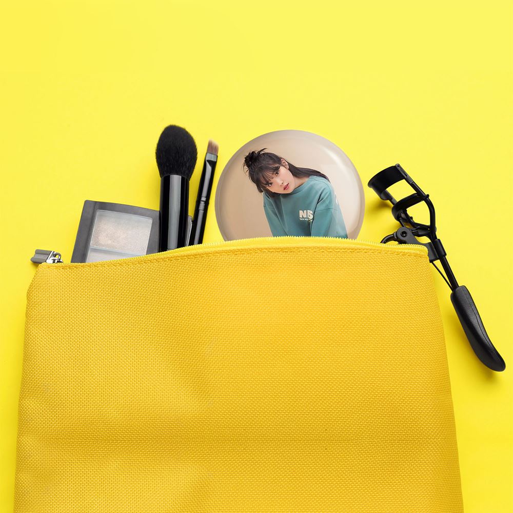 آینه های جیبی آیو IU خندالو دایره ای به قطر 7.5 سانتی متر می باشد که نه خیلی بزرگ و غیر قابل استفاده در کیف آرایشی ست و نه خیلی کوچک که تصویر خاصی در آن مشاهده نشود. سایزی استاندارد و کارآمد دارد و مناسب قرار گیری در کیف لوازم آرایش و کیف های کوچک دستی نیز هست.