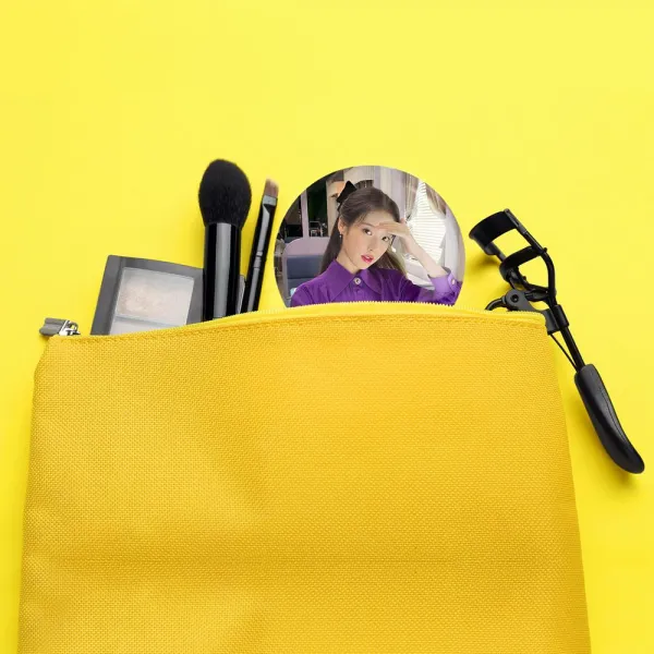 آینه های جیبی آیو IU خندالو دایره ای به قطر 7.5 سانتی متر می باشد که نه خیلی بزرگ و غیر قابل استفاده در کیف آرایشی ست و نه خیلی کوچک که تصویر خاصی در آن مشاهده نشود. سایزی استاندارد و کارآمد دارد و مناسب قرار گیری در کیف لوازم آرایش و کیف های کوچک دستی نیز هست.