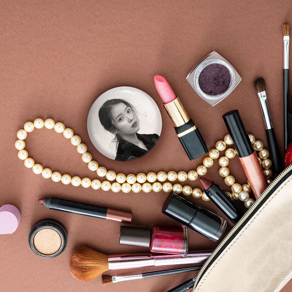 آینه های جیبی آیو IU خندالو دایره ای به قطر 7.5 سانتی متر می باشد که نه خیلی بزرگ و غیر قابل استفاده در کیف آرایشی ست و نه خیلی کوچک که تصویر خاصی در آن مشاهده نشود. سایزی استاندارد و کارآمد دارد و مناسب قرار گیری در کیف لوازم آرایش و کیف های کوچک دستی نیز هست. بدنه ی آینه جیبی آیو IU در قسمتی که آینه را در بر گرفته فلزی بوده و ظاهر براق و بسیار زیبایی دارد. چاپ طرح در پشت آینه بوسیله چاپگرهای دیجیتال شش رنگ با شفافیت و کیفیتی مثال زدنی انجام گرفته و با روکش لمینت حرارتی پوشیده شده که در مقابل آسیب و خط و خش مقاوم بوده و کیفیت بالایی دارد. آینه های جیبی آیو IU خندالو با تنوع طرحی بسیار بالا، سلیقه هر نوع مخاطبی را تامین میکند.
