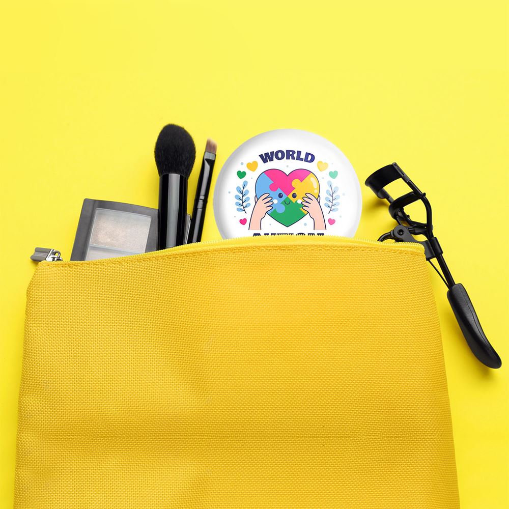 آینه های جیبی اتیسم Autism خندالو دایره ای به قطر 7.5 سانتی متر می باشد که نه خیلی بزرگ و غیر قابل استفاده در کیف آرایشی ست و نه خیلی کوچک که تصویر خاصی در آن مشاهده نشود. سایزی استاندارد و کارآمد دارد و مناسب قرار گیری در کیف لوازم آرایش و کیف های کوچک دستی نیز هست.