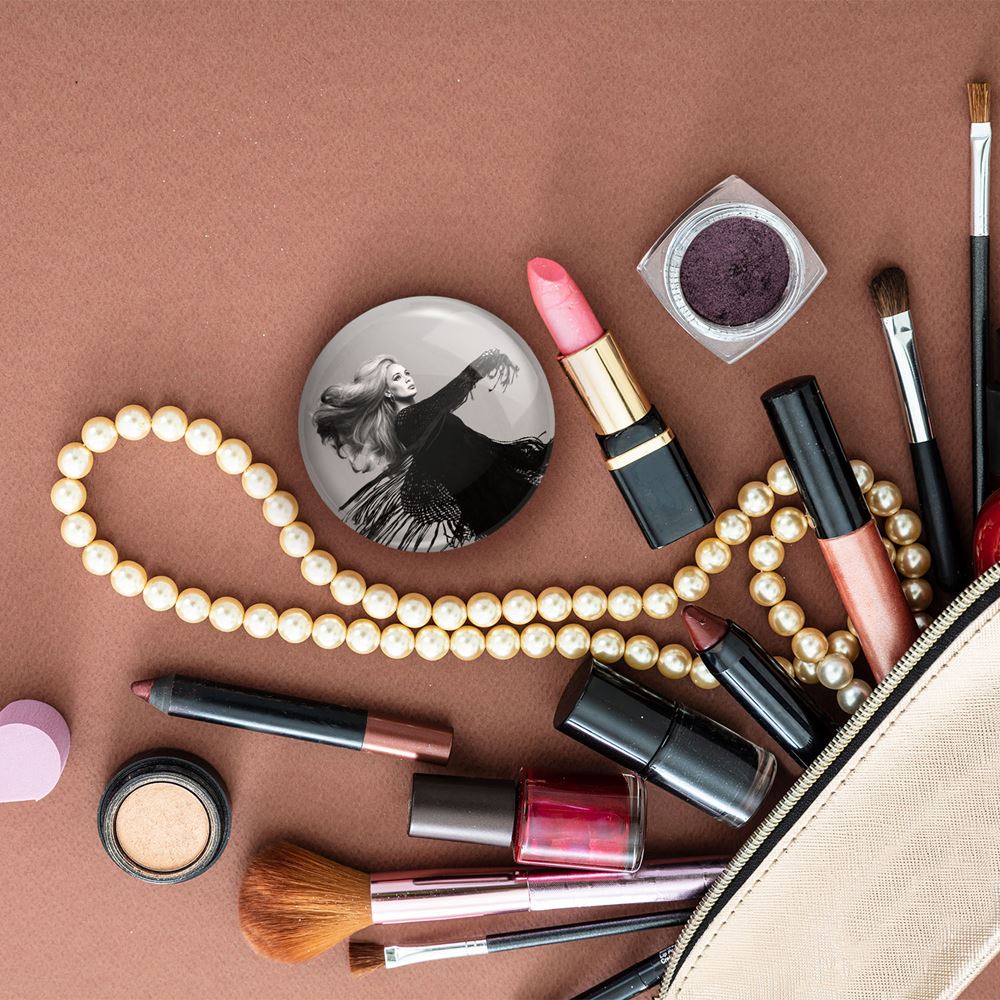 آینه های جیبی ادل Adele خندالو دایره ای به قطر 7.5 سانتی متر می باشد که نه خیلی بزرگ و غیر قابل استفاده در کیف آرایشی ست و نه خیلی کوچک که تصویر خاصی در آن مشاهده نشود. سایزی استاندارد و کارآمد دارد و مناسب قرار گیری در کیف لوازم آرایش و کیف های کوچک دستی نیز هست.