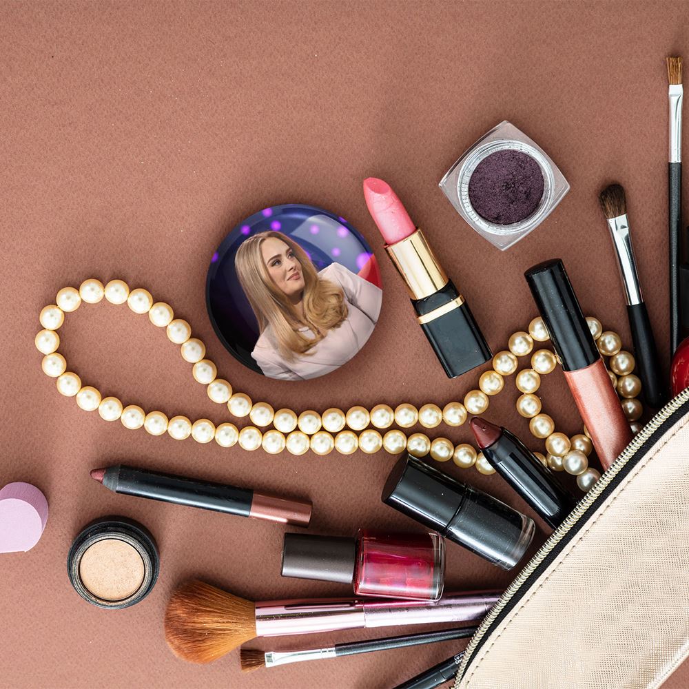 آینه های جیبی ادل Adele خندالو دایره ای به قطر 7.5 سانتی متر می باشد که نه خیلی بزرگ و غیر قابل استفاده در کیف آرایشی ست و نه خیلی کوچک که تصویر خاصی در آن مشاهده نشود. سایزی استاندارد و کارآمد دارد و مناسب قرار گیری در کیف لوازم آرایش و کیف های کوچک دستی نیز هست. بدنه ی آینه جیبی ادل Adele در قسمتی که آینه را در بر گرفته فلزی بوده و ظاهر براق و بسیار زیبایی دارد. چاپ طرح در پشت آینه بوسیله چاپگرهای دیجیتال شش رنگ با شفافیت و کیفیتی مثال زدنی انجام گرفته و با روکش لمینت حرارتی پوشیده شده که در مقابل آسیب و خط و خش مقاوم بوده و کیفیت بالایی دارد. آینه های جیبی ادل Adele خندالو با تنوع طرحی بسیار بالا، سلیقه هر نوع مخاطبی را تامین میکند.
