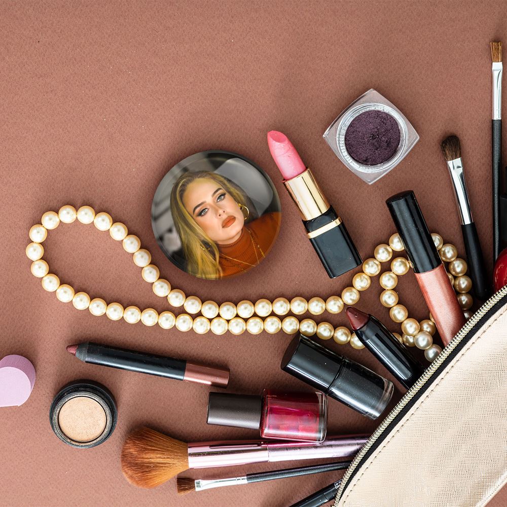 آینه های جیبی ادل Adele خندالو دایره ای به قطر 7.5 سانتی متر می باشد که نه خیلی بزرگ و غیر قابل استفاده در کیف آرایشی ست و نه خیلی کوچک که تصویر خاصی در آن مشاهده نشود. سایزی استاندارد و کارآمد دارد و مناسب قرار گیری در کیف لوازم آرایش و کیف های کوچک دستی نیز هست.