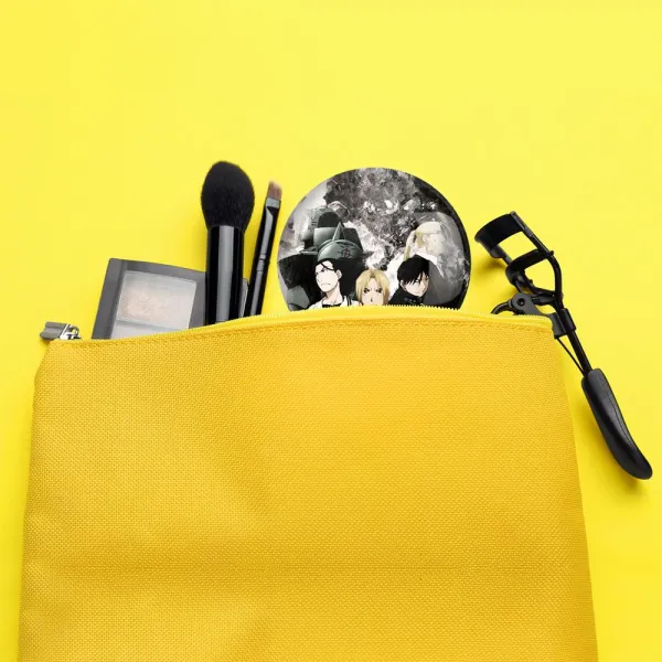 آینه های جیبی ادوارد الریک و دوستان انیمه کیمیاگر تمام فلزی خندالو دایره ای به قطر 7.5 سانتی متر می باشد که نه خیلی بزرگ و غیر قابل استفاده در کیف آرایشی ست و نه خیلی کوچک که تصویر خاصی در آن مشاهده نشود. سایزی استاندارد و کارآمد دارد و مناسب قرار گیری در کیف لوازم آرایش و کیف های کوچک دستی نیز هست. بدنه ی آینه جیبی ادوارد الریک و دوستان انیمه کیمیاگر تمام فلزی در قسمتی که آینه را در بر گرفته فلزی بوده و ظاهر براق و بسیار زیبایی دارد. چاپ طرح در پشت آینه بوسیله چاپگرهای دیجیتال شش رنگ با شفافیت و کیفیتی مثال زدنی انجام گرفته و با روکش لمینت حرارتی پوشیده شده که در مقابل آسیب و خط و خش مقاوم بوده و کیفیت بالایی دارد. آینه های جیبی ادوارد الریک و دوستان انیمه کیمیاگر تمام فلزی خندالو با تنوع طرحی بسیار بالا، سلیقه هر نوع مخاطبی را تامین میکند.