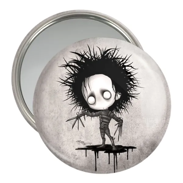 آینه های جیبی ادوارد دست قیچی خندالو دایره ای به قطر 7.5 سانتی متر می باشد که نه خیلی بزرگ و غیر قابل استفاده در کیف آرایشی ست و نه خیلی کوچک که تصویر خاصی در آن مشاهده نشود. سایزی استاندارد و کارآمد دارد و مناسب قرار گیری در کیف لوازم آرایش و کیف های کوچک دستی نیز هست. بدنه ی آینه جیبی ادوارد دست قیچی در قسمتی که آینه را در بر گرفته فلزی بوده و ظاهر براق و بسیار زیبایی دارد. چاپ طرح در پشت آینه بوسیله چاپگرهای دیجیتال شش رنگ با شفافیت و کیفیتی مثال زدنی انجام گرفته و با روکش لمینت حرارتی پوشیده شده که در مقابل آسیب و خط و خش مقاوم بوده و کیفیت بالایی دارد. آینه های جیبی ادوارد دست قیچی خندالو با تنوع طرحی بسیار بالا، سلیقه هر نوع مخاطبی را تامین میکند.