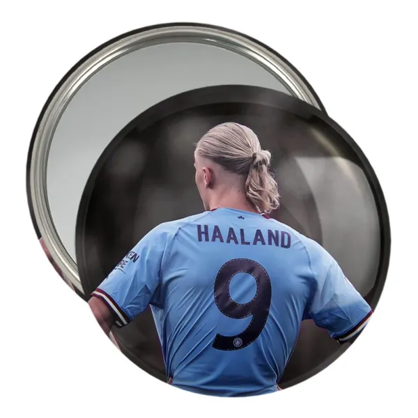آینه های جیبی ارلینگ هالند Erling Haaland خندالو دایره ای به قطر 7.5 سانتی متر می باشد که نه خیلی بزرگ و غیر قابل استفاده در کیف آرایشی ست و نه خیلی کوچک که تصویر خاصی در آن مشاهده نشود. سایزی استاندارد و کارآمد دارد و مناسب قرار گیری در کیف لوازم آرایش و کیف های کوچک دستی نیز هست.