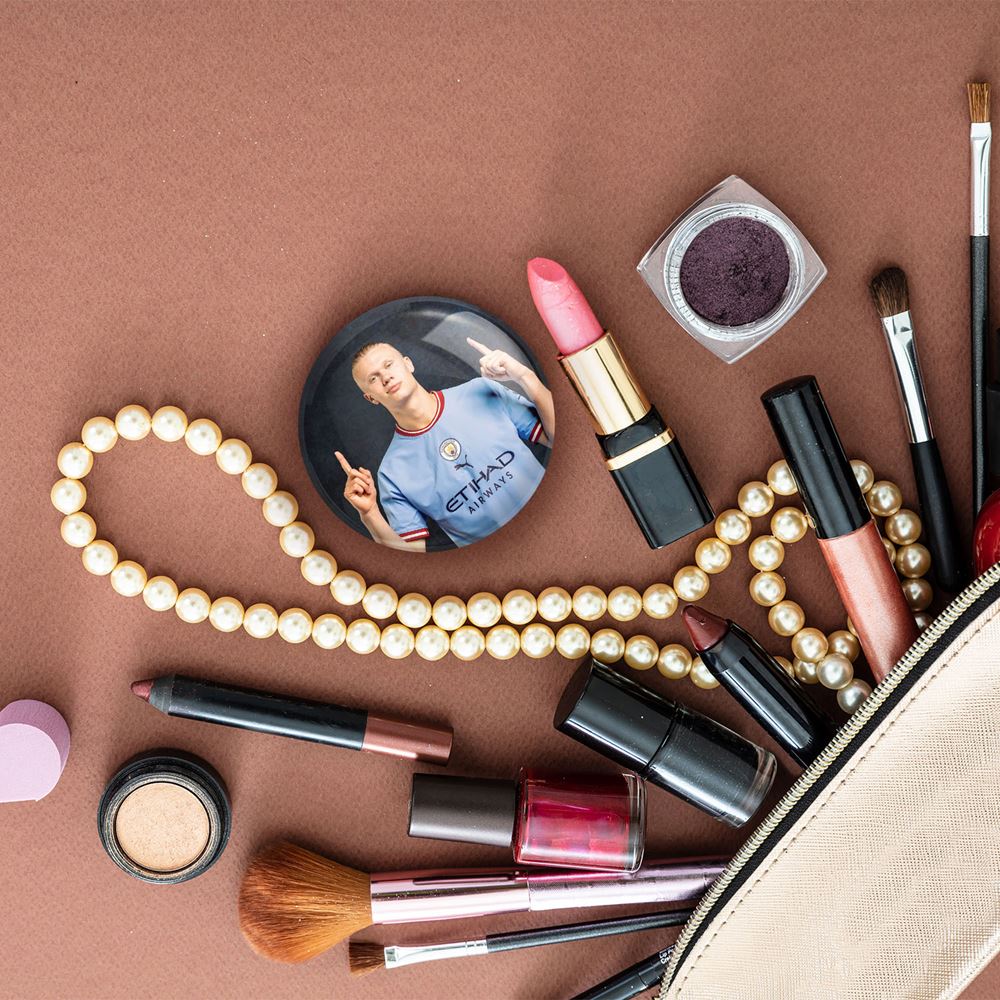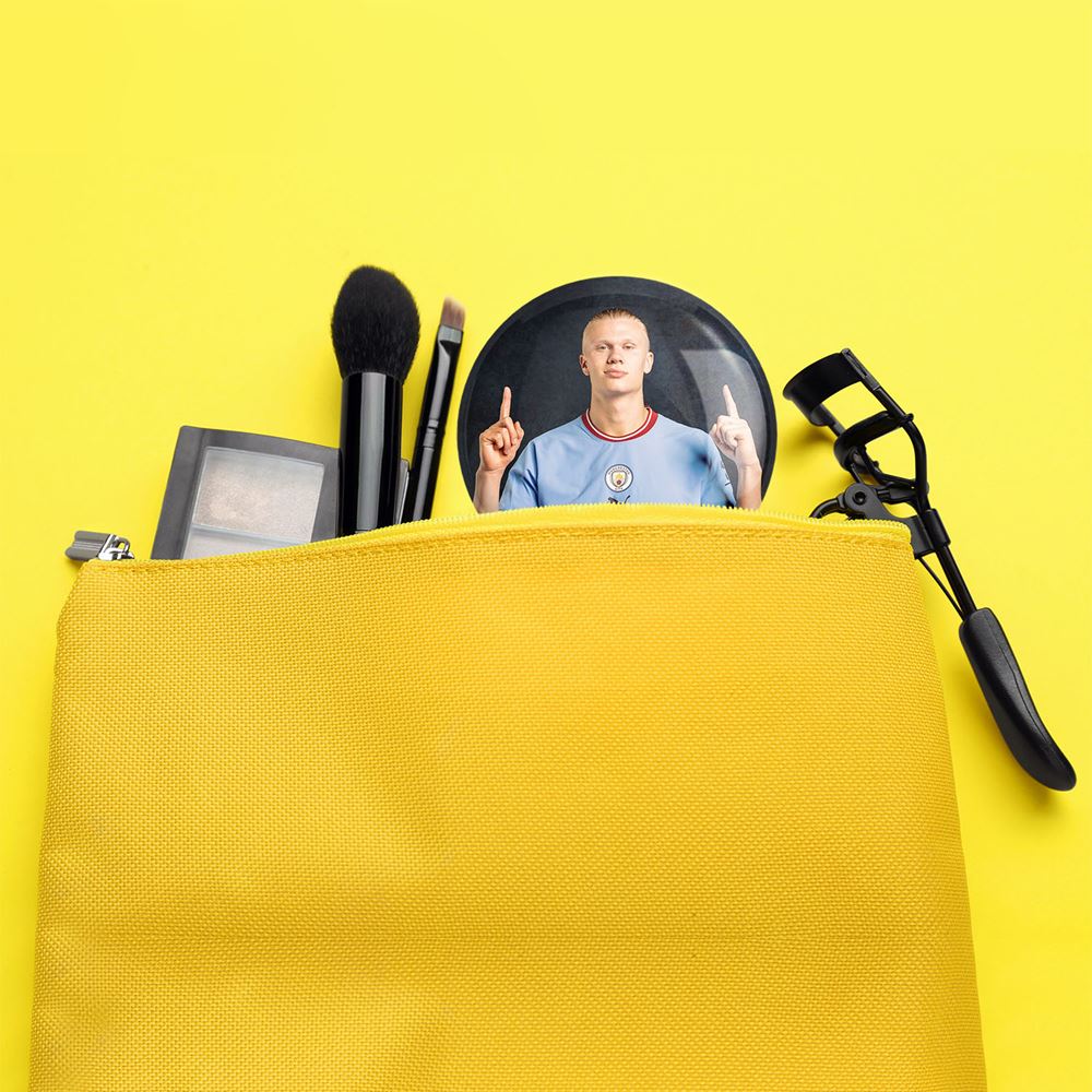 آینه های جیبی ارلینگ هالند Erling Haaland خندالو دایره ای به قطر 7.5 سانتی متر می باشد که نه خیلی بزرگ و غیر قابل استفاده در کیف آرایشی ست و نه خیلی کوچک که تصویر خاصی در آن مشاهده نشود. سایزی استاندارد و کارآمد دارد و مناسب قرار گیری در کیف لوازم آرایش و کیف های کوچک دستی نیز هست.