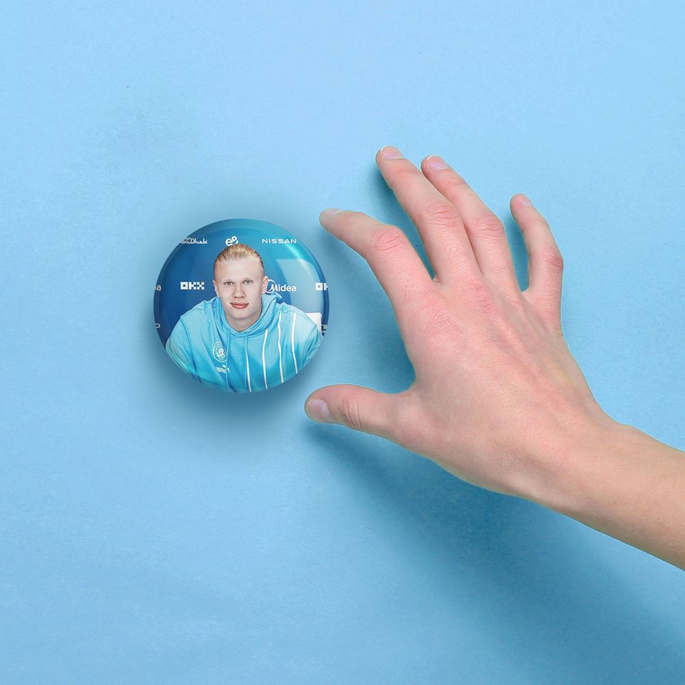 آینه های جیبی ارلینگ هالند Erling Haaland خندالو دایره ای به قطر 7.5 سانتی متر می باشد که نه خیلی بزرگ و غیر قابل استفاده در کیف آرایشی ست و نه خیلی کوچک که تصویر خاصی در آن مشاهده نشود. سایزی استاندارد و کارآمد دارد و مناسب قرار گیری در کیف لوازم آرایش و کیف های کوچک دستی نیز هست.