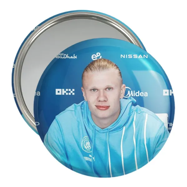آینه های جیبی ارلینگ هالند Erling Haaland خندالو دایره ای به قطر 7.5 سانتی متر می باشد که نه خیلی بزرگ و غیر قابل استفاده در کیف آرایشی ست و نه خیلی کوچک که تصویر خاصی در آن مشاهده نشود. سایزی استاندارد و کارآمد دارد و مناسب قرار گیری در کیف لوازم آرایش و کیف های کوچک دستی نیز هست.