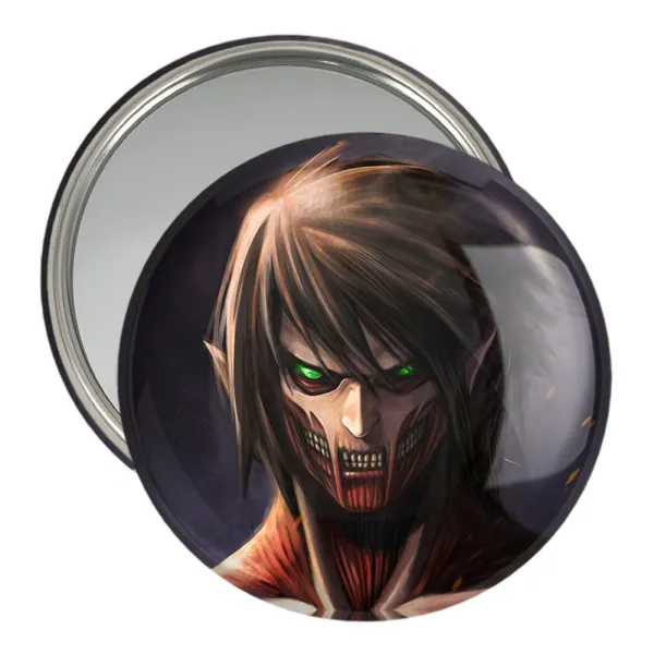 آینه های جیبی ارن حالت تایتانی انیمه اتک آن تایتان Attack on Titan خندالو دایره ای به قطر 7.5 سانتی متر می باشد که نه خیلی بزرگ و غیر قابل استفاده در کیف آرایشی ست و نه خیلی کوچک که تصویر خاصی در آن مشاهده نشود. سایزی استاندارد و کارآمد دارد و مناسب قرار گیری در کیف لوازم آرایش و کیف های کوچک دستی نیز هست. بدنه ی آینه جیبی ارن حالت تایتانی انیمه اتک آن تایتان Attack on Titan در قسمتی که آینه را در بر گرفته فلزی بوده و ظاهر براق و بسیار زیبایی دارد. چاپ طرح در پشت آینه بوسیله چاپگرهای دیجیتال شش رنگ با شفافیت و کیفیتی مثال زدنی انجام گرفته و با روکش لمینت حرارتی پوشیده شده که در مقابل آسیب و خط و خش مقاوم بوده و کیفیت بالایی دارد. آینه های جیبی ارن حالت تایتانی انیمه اتک آن تایتان Attack on Titan خندالو با تنوع طرحی بسیار بالا، سلیقه هر نوع مخاطبی را تامین میکند.